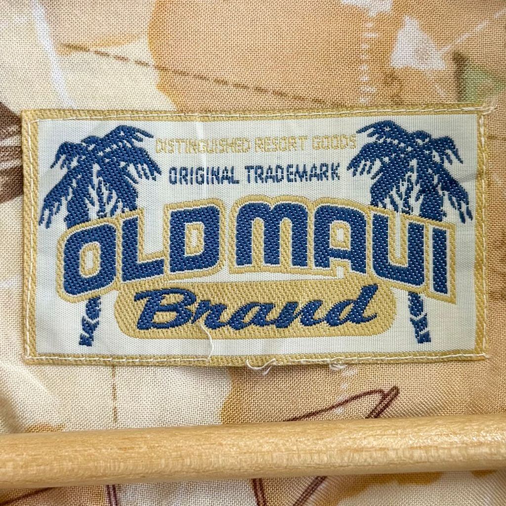 OLD MAUI ヨット セーリングボード 総柄 柄シャツ デザインシャツ 半袖シャツ オレンジ×ベージュ系×多色 No.G550