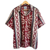 ハワイ製 RJC ハワイアンシャツ アロハシャツ オープンカラー 開襟シャツ アート 総柄 柄シャツ 半袖シャツ 赤×ベージュ×多色 XLサイズ No.G552