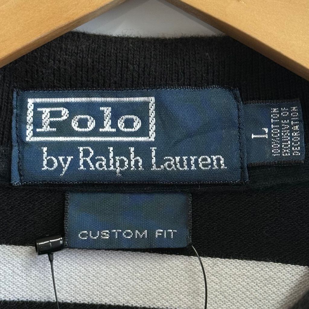 POLO RALPH LAUREN ポロ ラルフローレン CUSTOM FIT ポロシャツ 半袖 ボーダー ワンポイントロゴ 刺繍 黒×白 Lサイズ No.G563