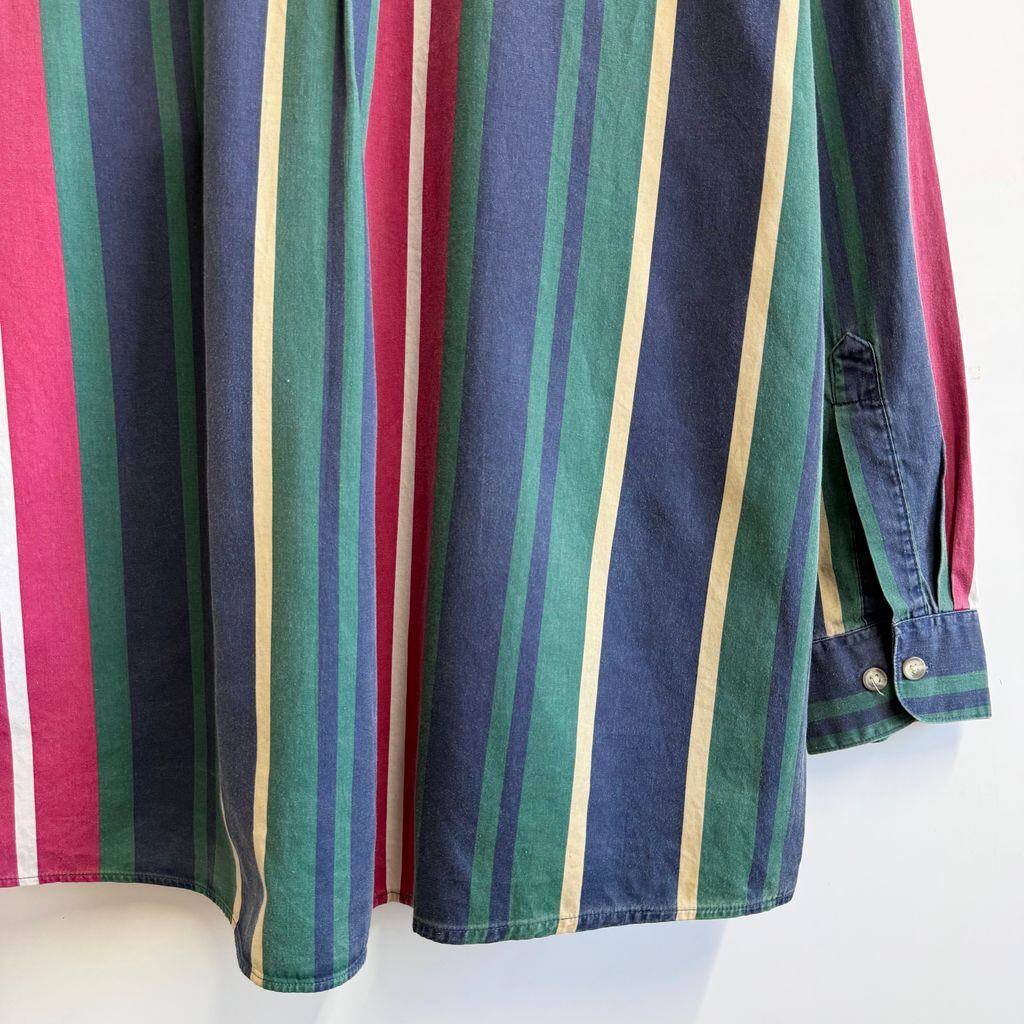 〜90's VAN HEUSEN ヴァンヒューゼン vintage ビンテージ ボタンダウンシャツ コットンシャツ ストライプ ポケット付き 長袖シャツ 紺×多色 XLサイズ No.G578