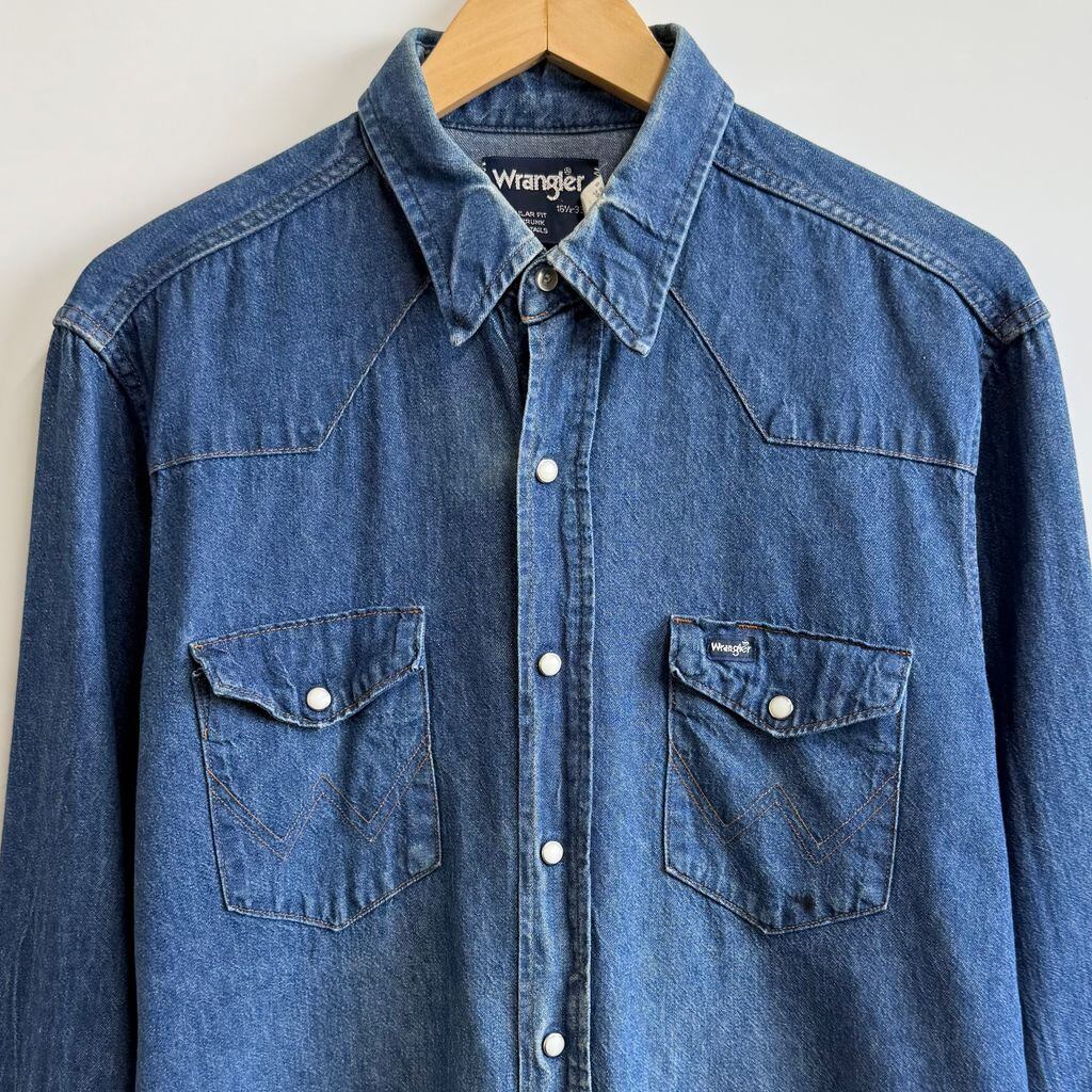 USA製 Wrangler ラングラー ウエスタンシャツ デニムシャツ スナップボタン コットンシャツ ポケット付き 長袖シャツ 青 ブルー No.G580