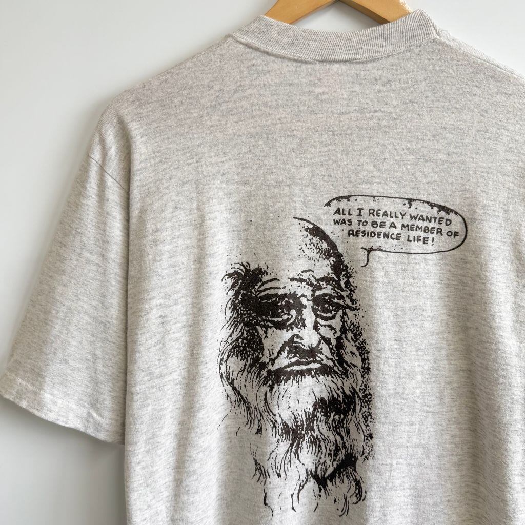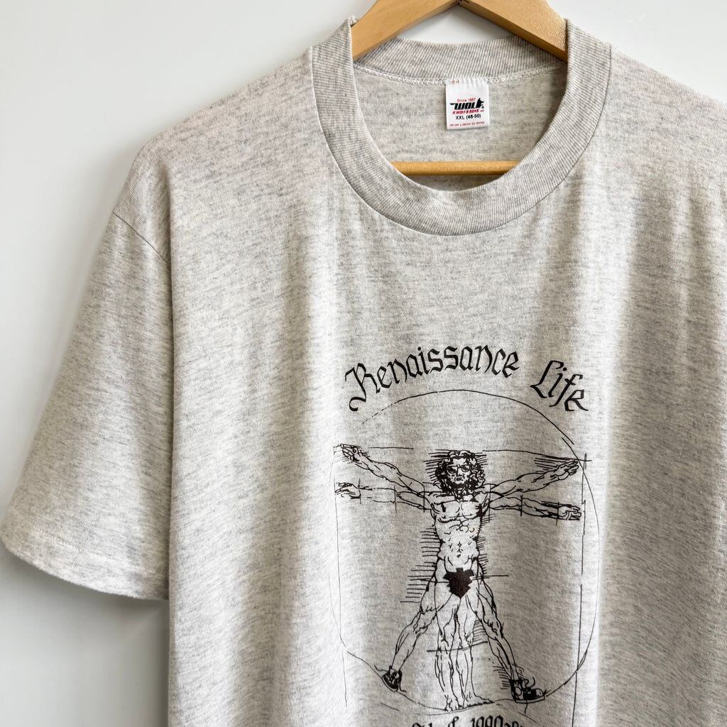 USA製 WOLF 両面プリント レオナルドダヴィンチ ウィトルウィウス的人体図 シングルステッチ 半袖Tシャツ ライトグレー XXLサイズ No.G592