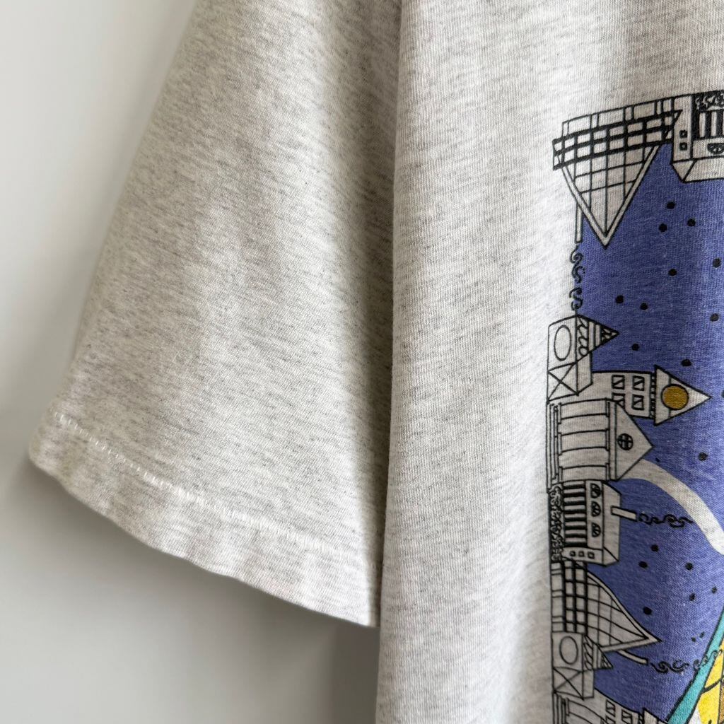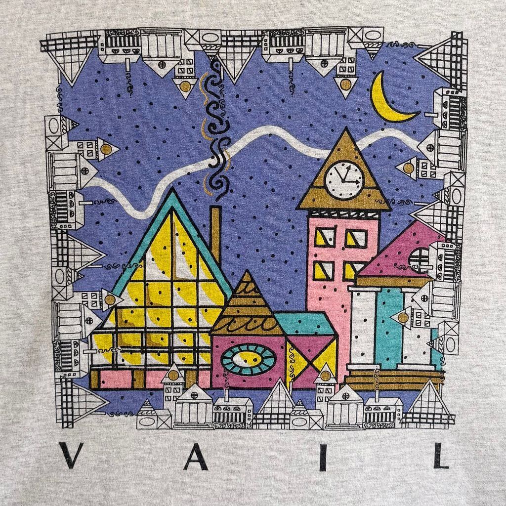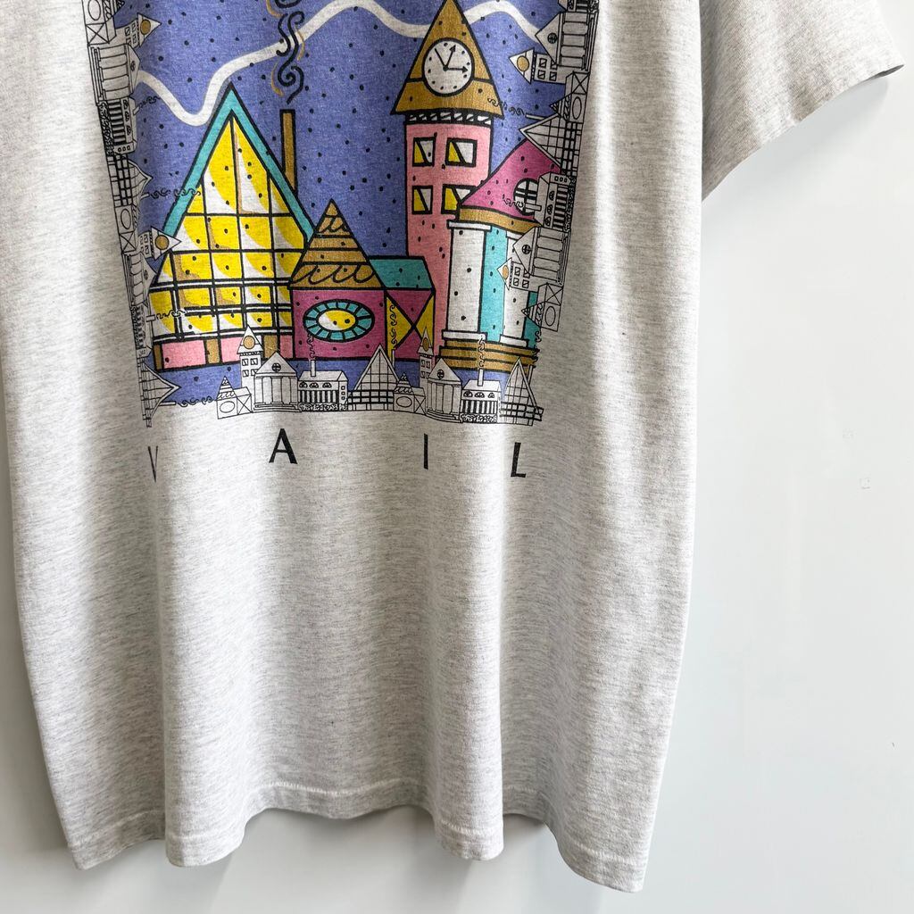 フロントプリント スキーリゾート VAIL ベイル アート 昭和 レトロ ポップ シングルステッチ 半袖Tシャツ ライトグレー No.G598