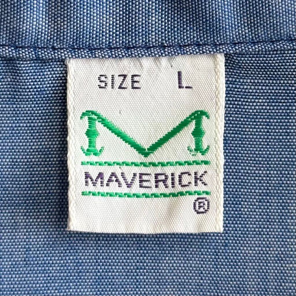 70's〜 USA製 MAVERICK ビンテージ vintage シャンブレーシャツ スキッパーカラー オープンカラー 開襟シャツ 無地 長袖シャツ 青 ブルー Lサイズ No.G625