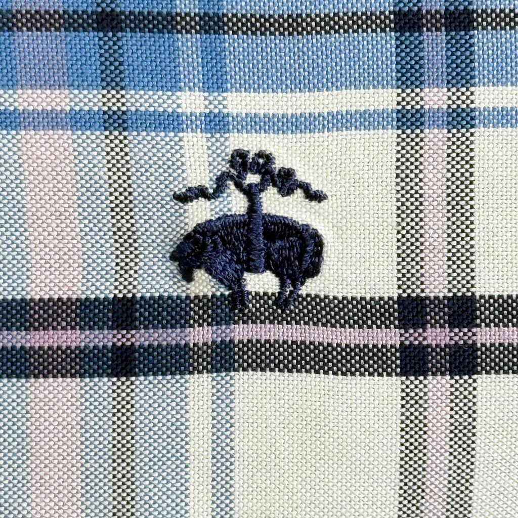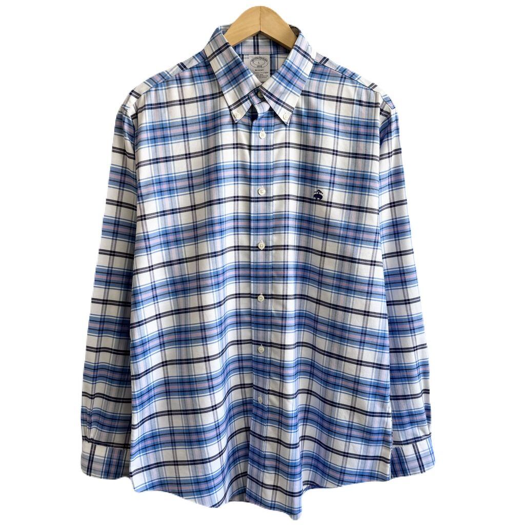 ブルックスブラザーズ ボタンダウンシャツ コットンシャツ チェック柄 長袖シャツ ワンポイントロゴ 刺繍 白×青×ピンク×紺 Lサイズ No.G627