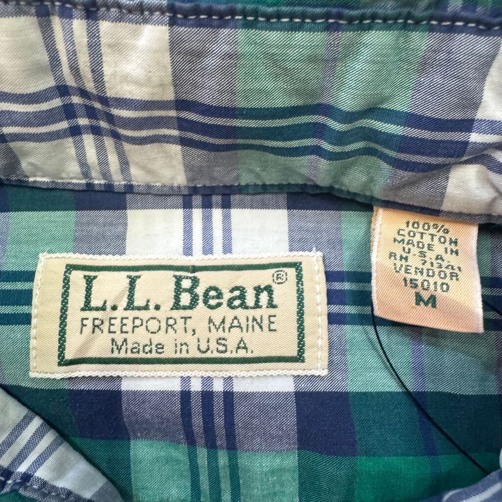 USA製 L.L.Bean エルエルビーン チェック柄 ポケット付き 半袖シャツ 緑×青×白 Mサイズ No.E638