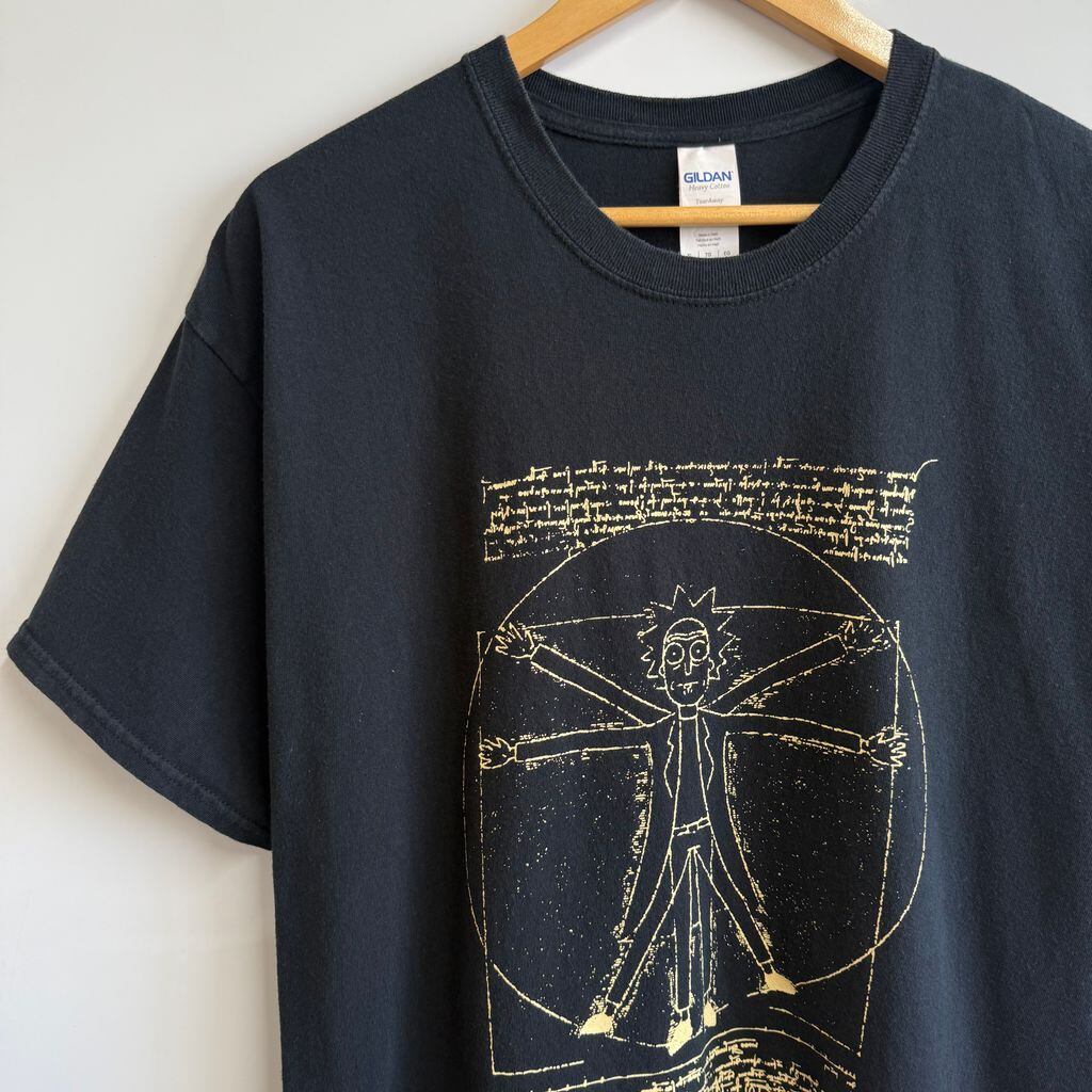 GILDAN ギルダン リックアンドモーティ リックサンチェス レオナルドダヴィンチ ウィトルウィウス的人体図 半袖Tシャツ 黒 ブラック XLサイズ No.G647