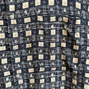 90's VAN HEUSEN ヴァンヒューゼン レーヨンシャツ 総柄 柄シャツ デザインシャツ 半袖シャツ 胸ポケット付き 紺×ベージュ XLサイズ No.G653