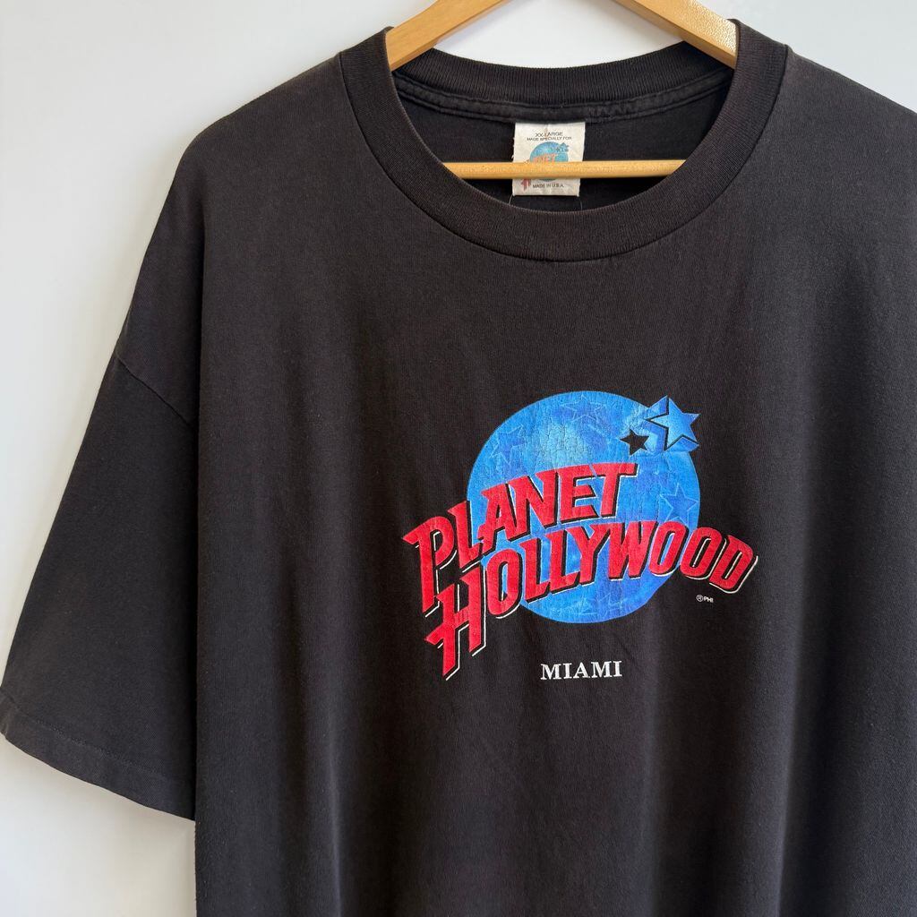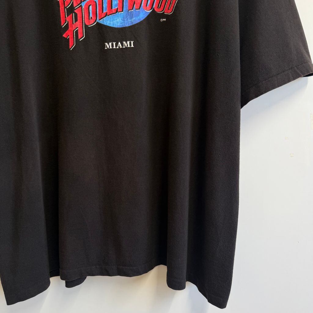USA製 PLANET HOLLYWOOD プラネットハリウッド ロゴプリント MIAMI シングルステッチ 半袖Tシャツ 黒 XXLサイズ No.G667