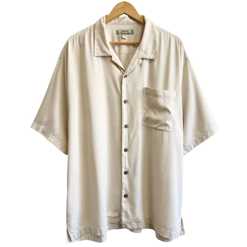 Tommy Bahama トミーバハマ シルクシャツ ストライプ ポケット付き 半袖シャツ オープンカラー 開襟シャツ アイボリー XLサイズ No.G673