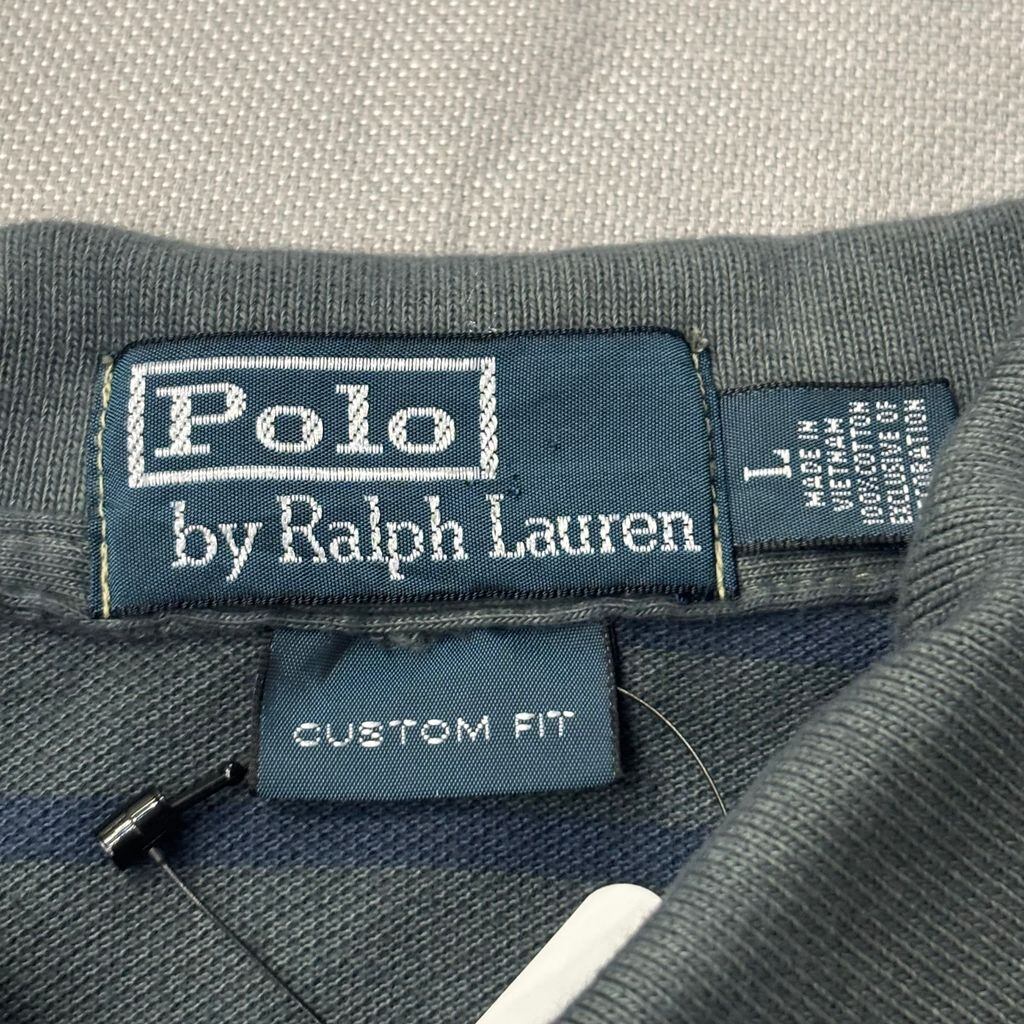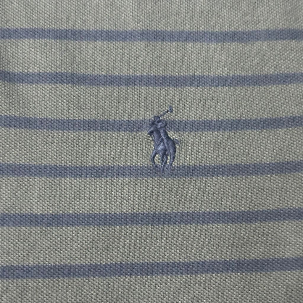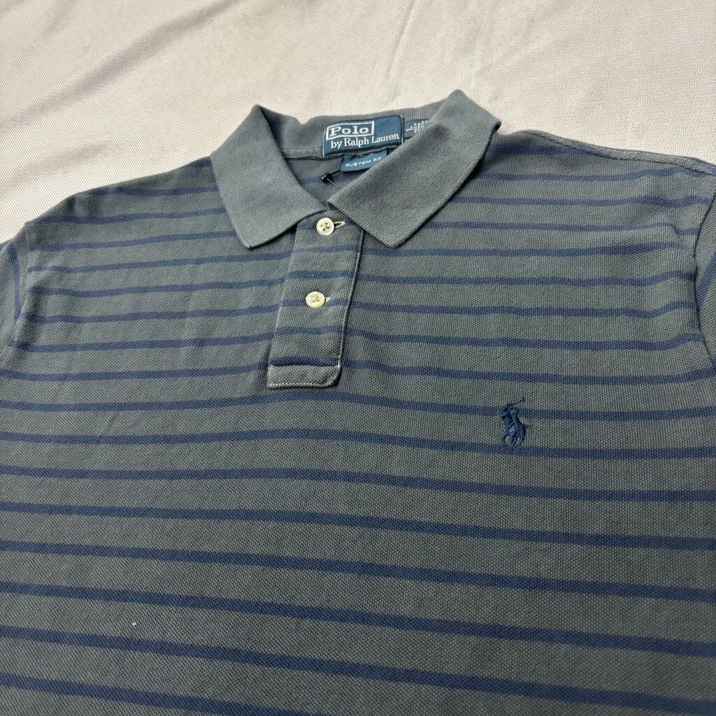 Polo by Ralph Lauren ポロ・ラルフローレン カスタムフィット ポロシャツ ボーダー ダークグレー 紺 グレー No.K077