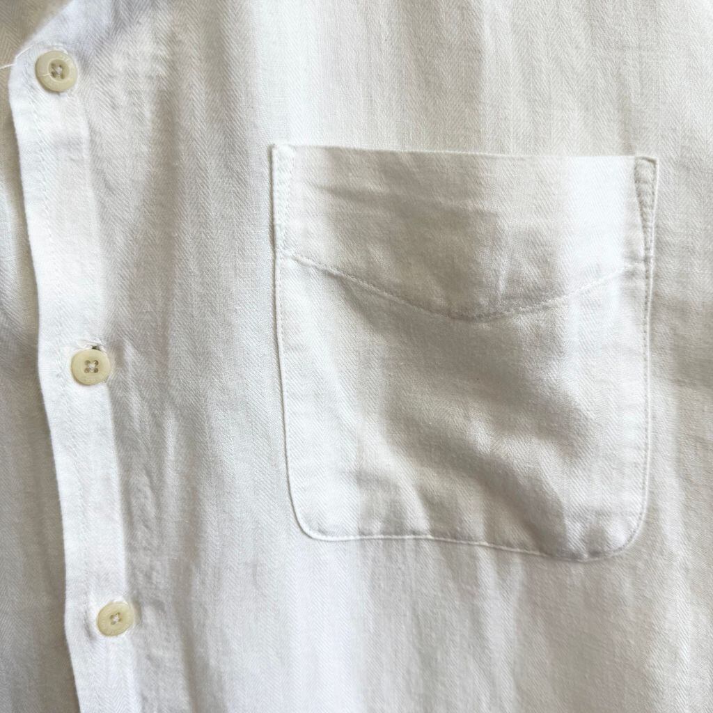 ROUTE66 オープンカラー 開襟シャツ 無地 ポケット付き コットン 麻 半袖シャツ 白 Mサイズ No.G692