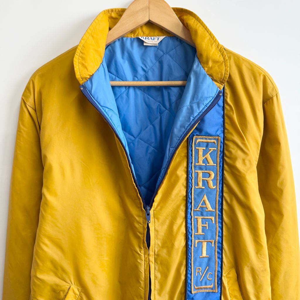 KRAFT レーシングジャケット ジャンパー ブルゾン ロゴ刺繍 フルジップ ポケット付き マスタード×青 Lサイズ No.G699
