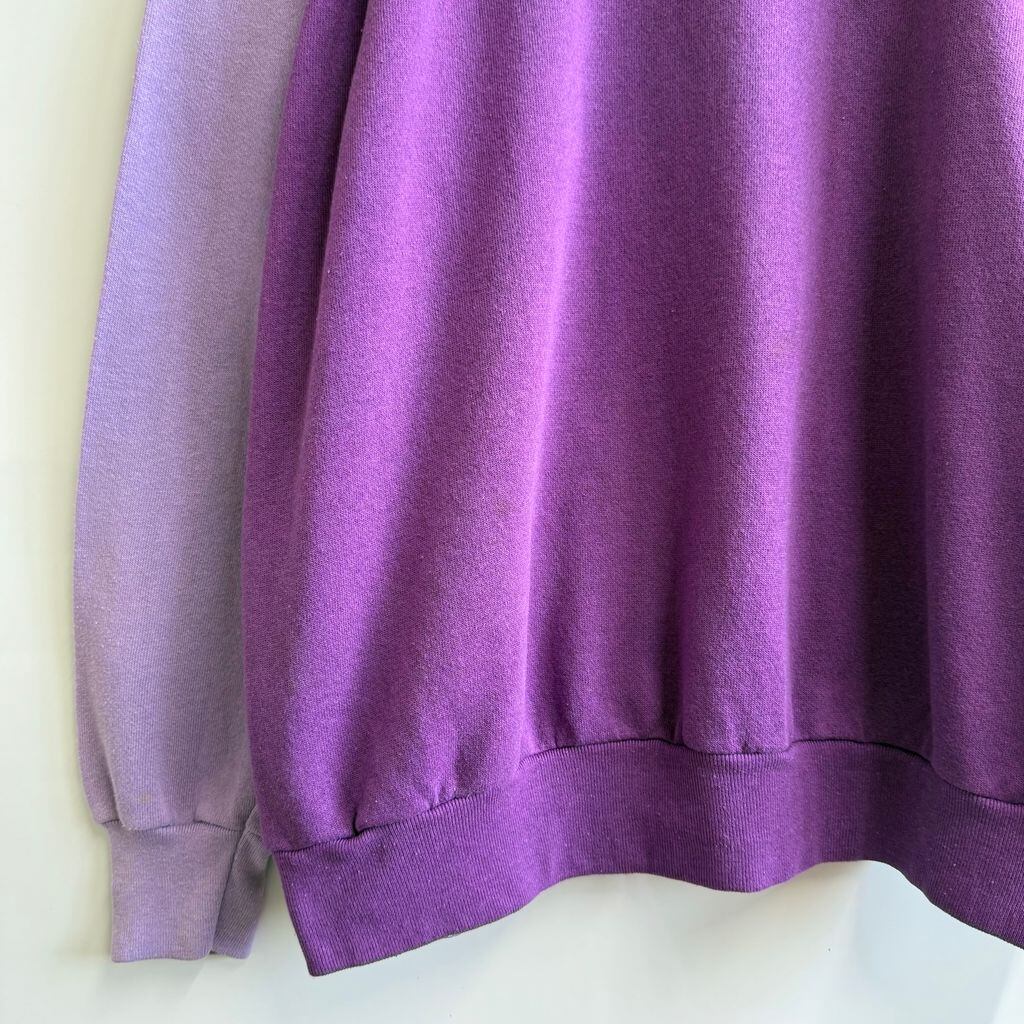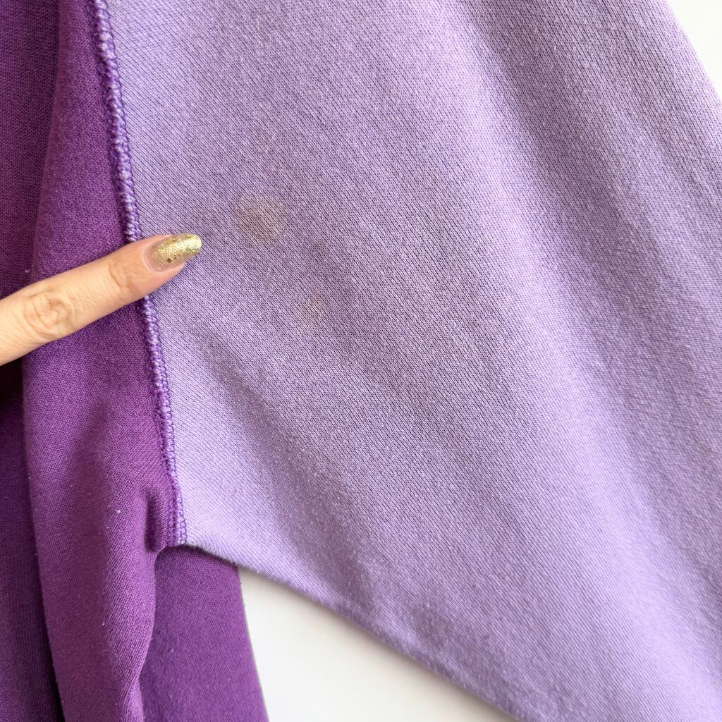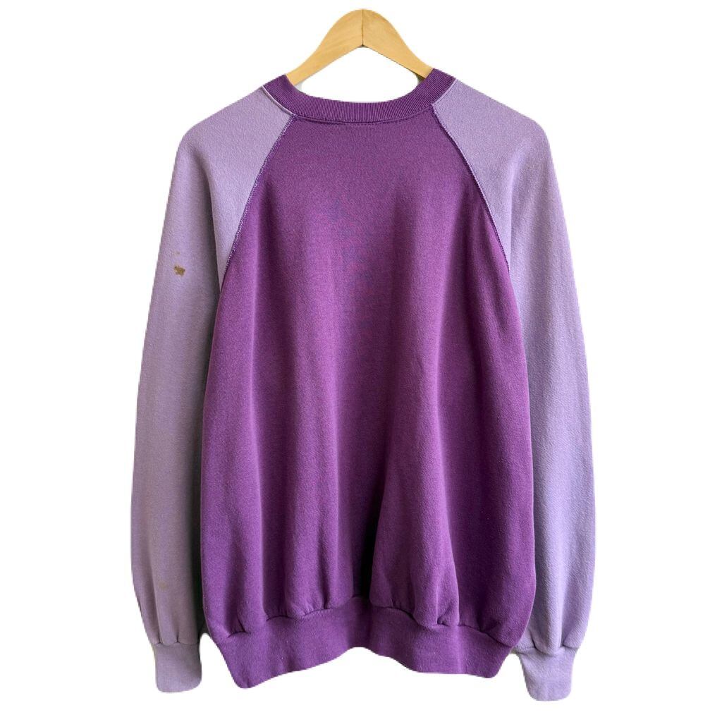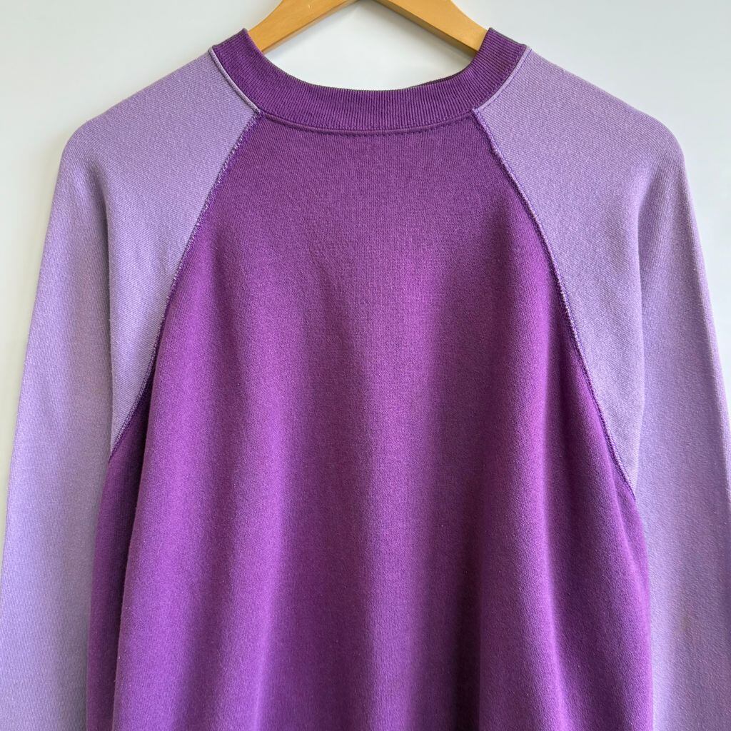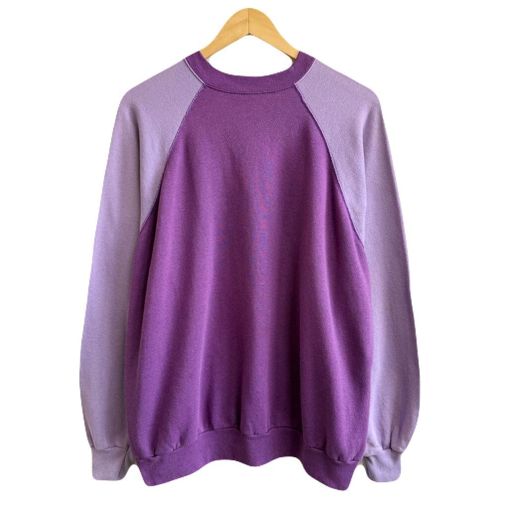 〜90's ラグランスウェット トレーナー 裏起毛 2トーン バイカラー 無地 紫 パープル×薄紫 ラベンダー No.G703