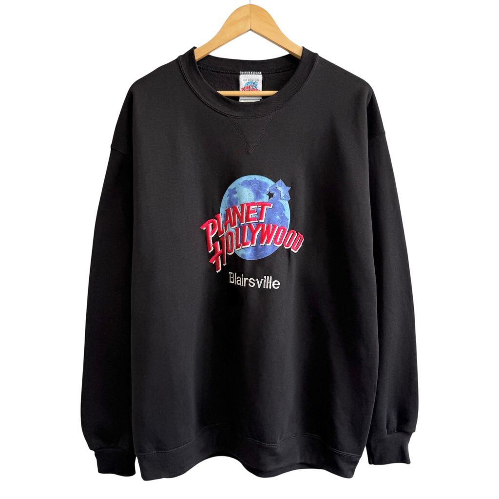 USA製 PLANET HOLLYWOOD プラネットハリウッド ロゴ刺繍 Blairsville ブレアズヴィル トレーナー スウェット 裏起毛 黒 ブラック XLサイズ No.G712