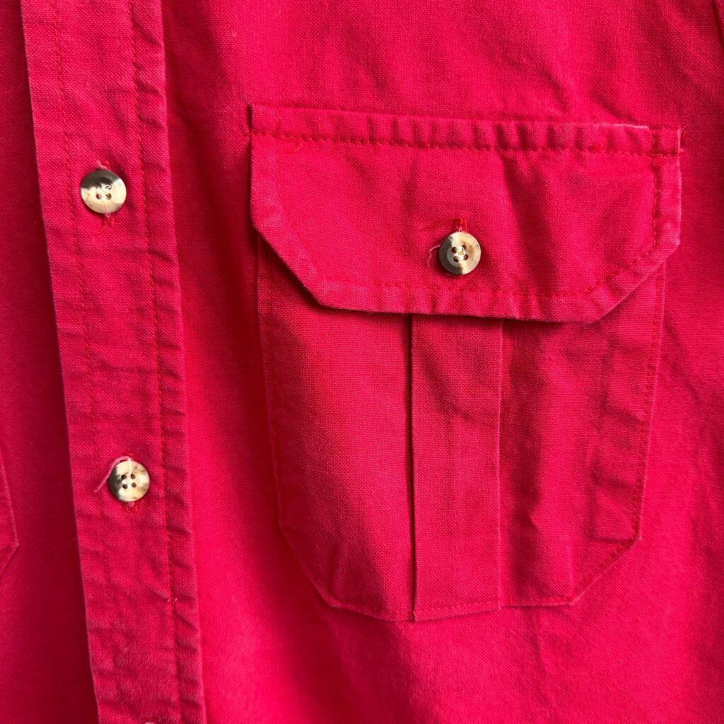 USA製 ORVIS オービス 切り替えデザイン 襟コーデュロイ コットンシャツ 無地 ポケット付き 長袖シャツ 赤×ベージュ No.G734