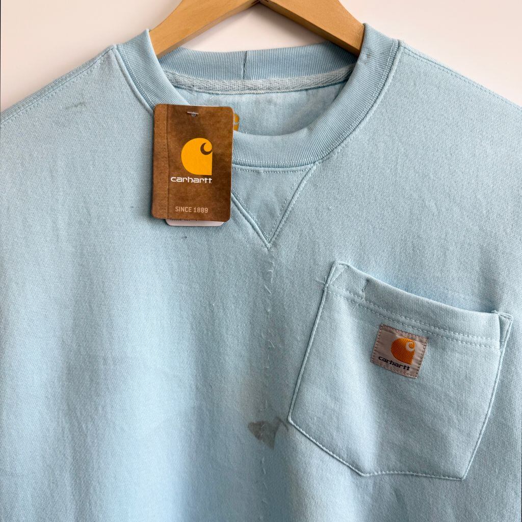 (デッドストック) Carhartt カーハート ORIGINAL FIT トレーナー スウェット 裏起毛 胸ポケット付き ロゴプリント 水色 ブルー Lサイズ No.G737
