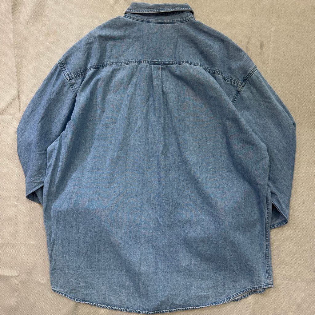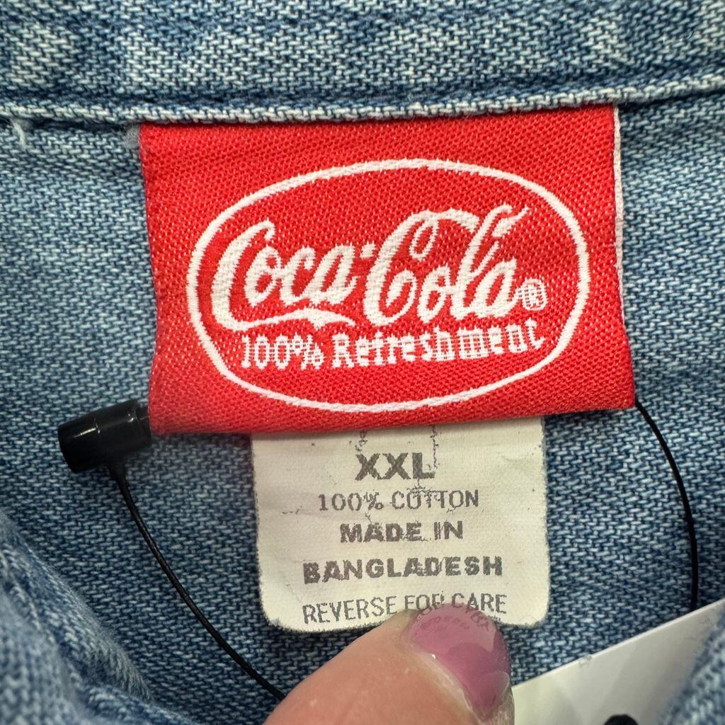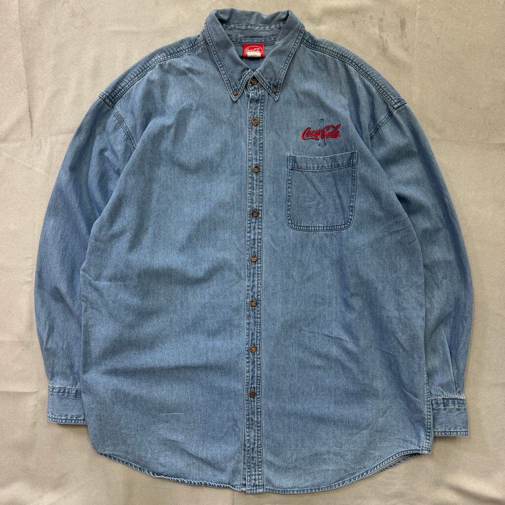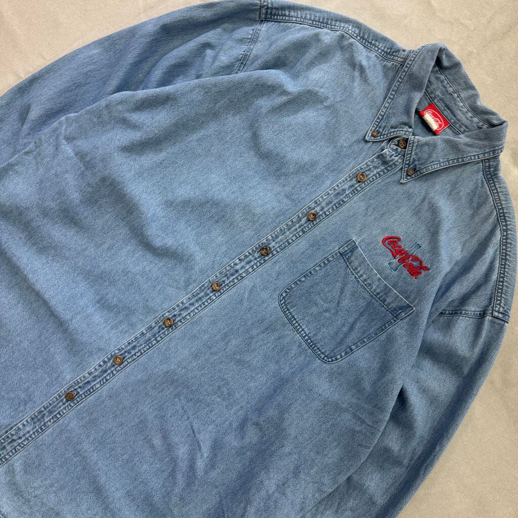 Coca Cola コカコーラ ロゴ ボタンダウン ポケット付き 刺繍 デニムシャツ 長袖シャツ XXLサイズ No.E663