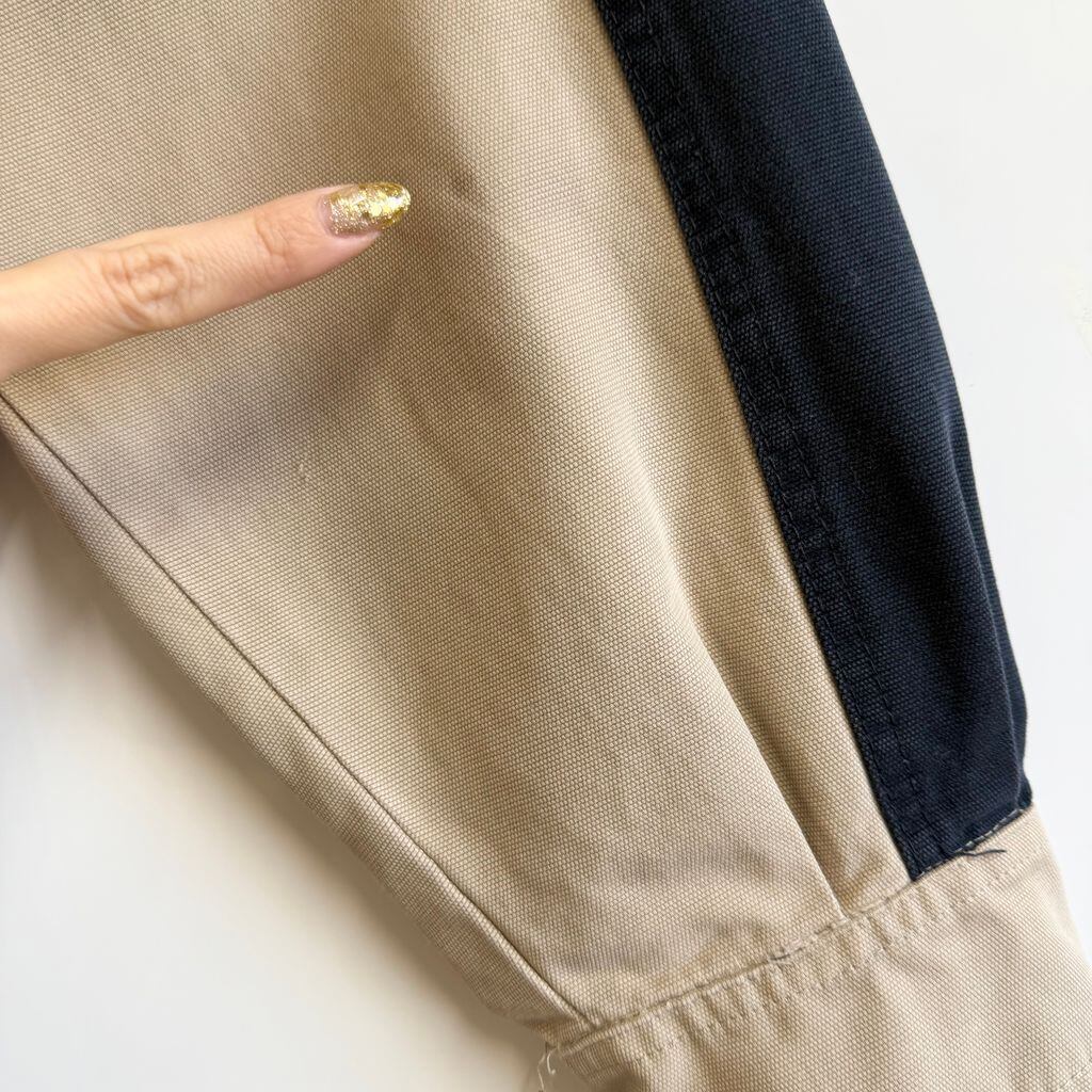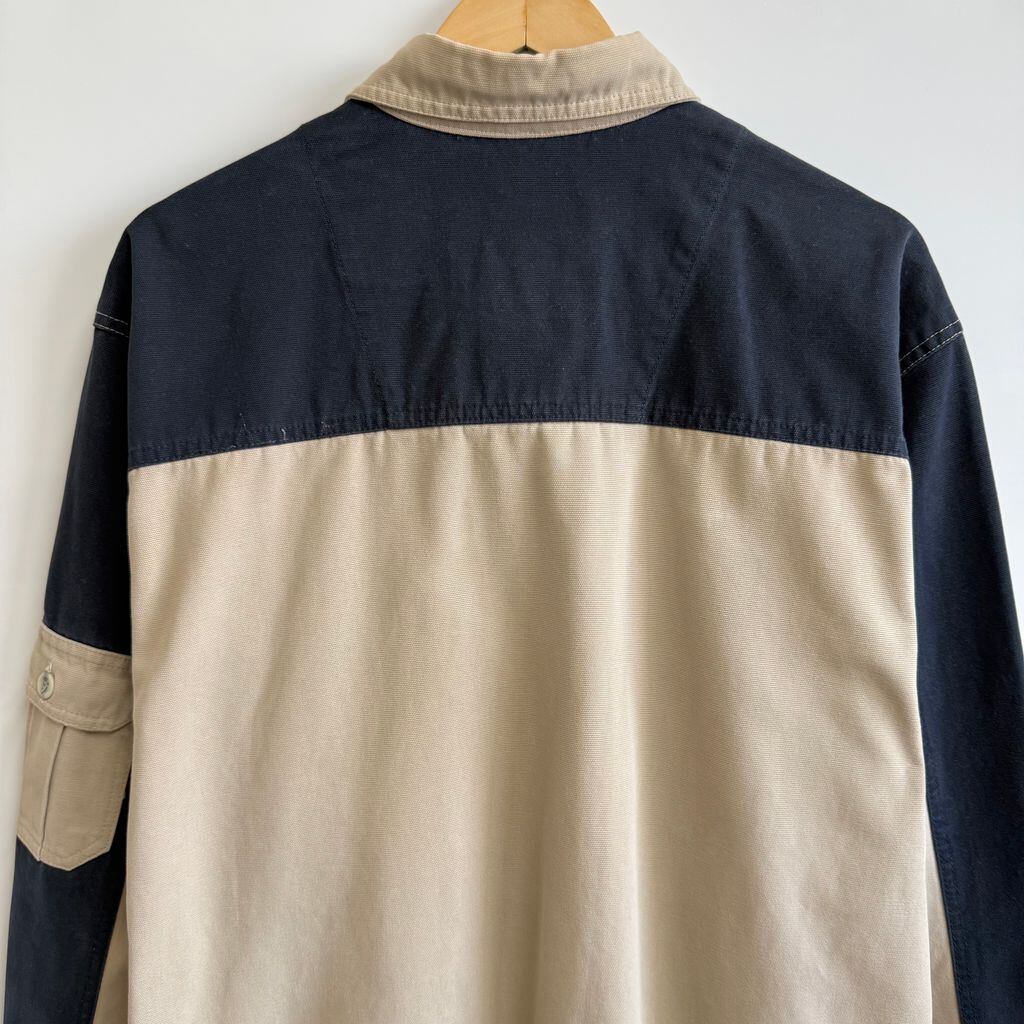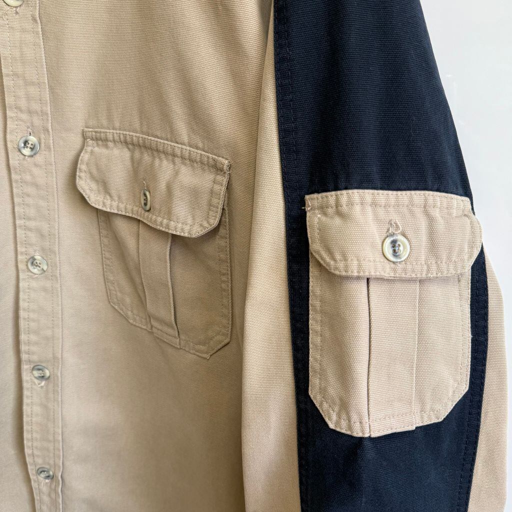 SANTORYO コットンシャツ 無地 ポケット付き 長袖シャツ バイカラー ベージュ×紺 ネイビー XLサイズ No.G765