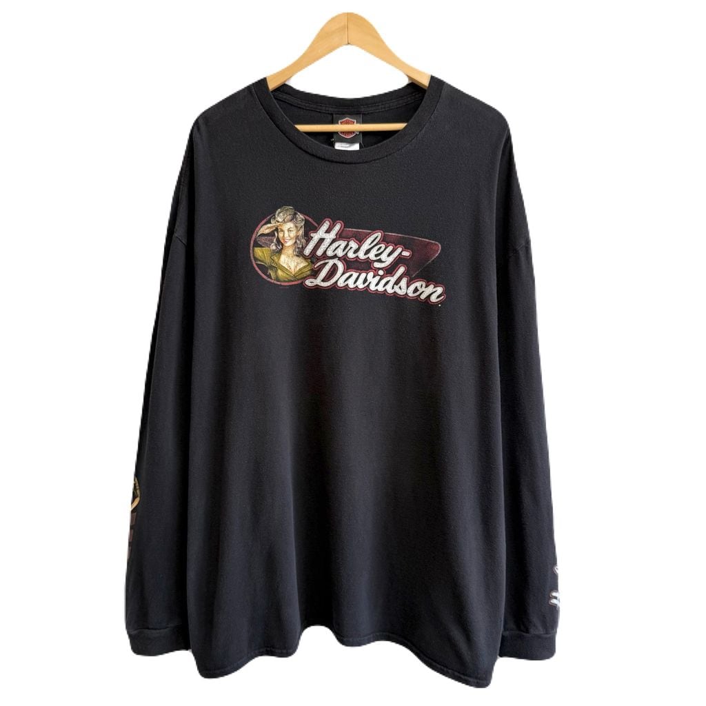 HARLEY DAVIDSON ハーレーダビッドソン 全面プリント バーボンストリート ニューオーリンズ ピンナップガール ロンT 黒 ブラック 3XLサイズ No.G773