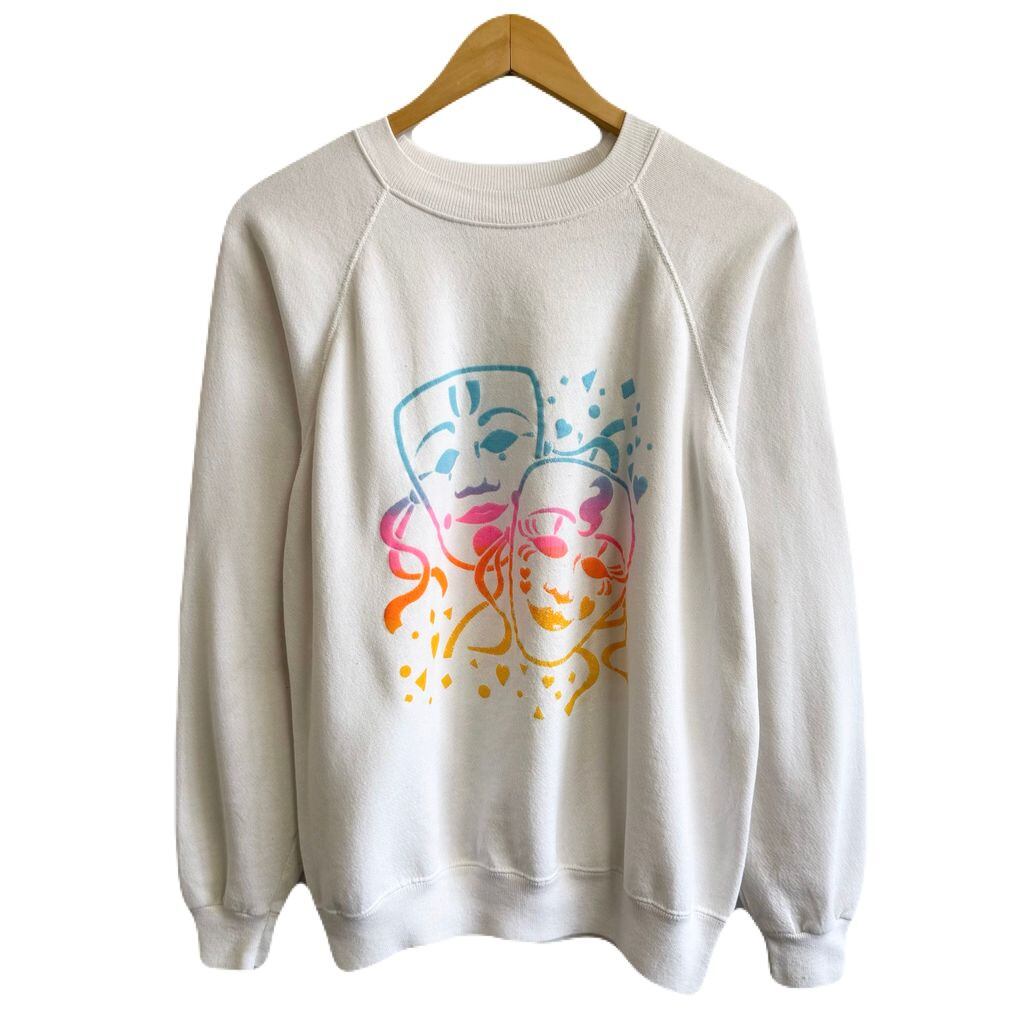 USA製 Hanes ヘインズ マスク 下面 ラグランスウェット トレーナー 裏起毛 白×カラフル Lサイズ No.G774