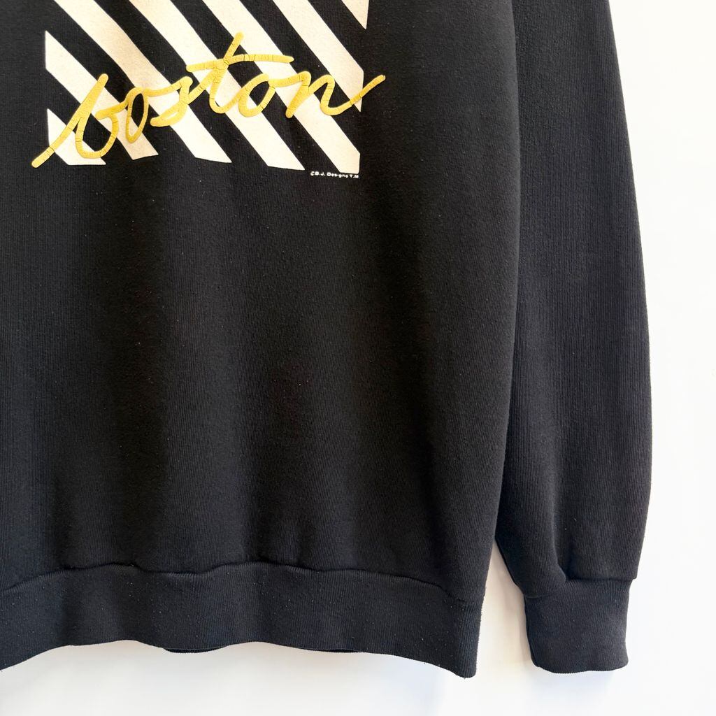 フロントプリント Boston ボストン ストライプ ラグランスウェット トレーナー 黒 ブラック No.G802