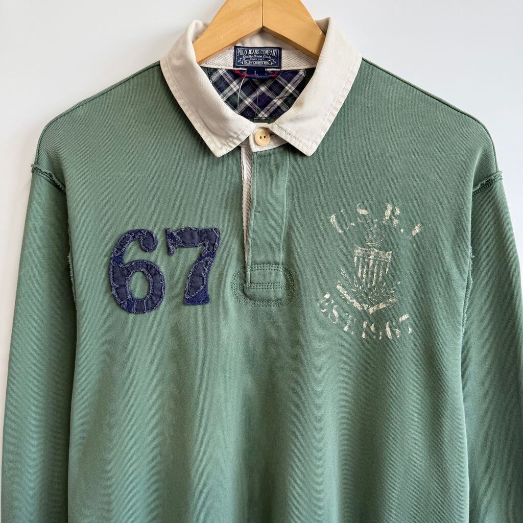 POLO JEANS ポロジーンズ ラガーシャツ ワッペン 刺繍 トレーナー スウェット 襟付き カーキ Lサイズ No.G806