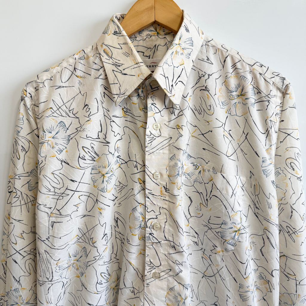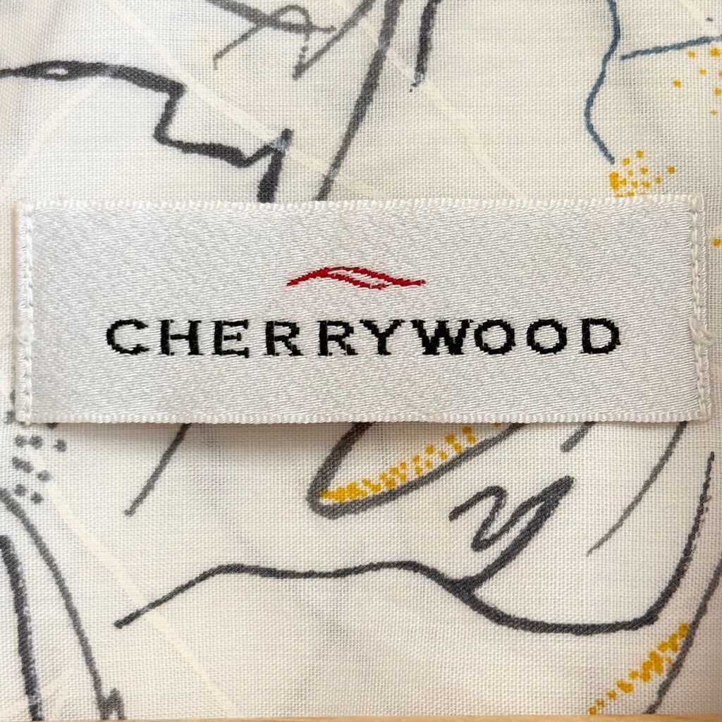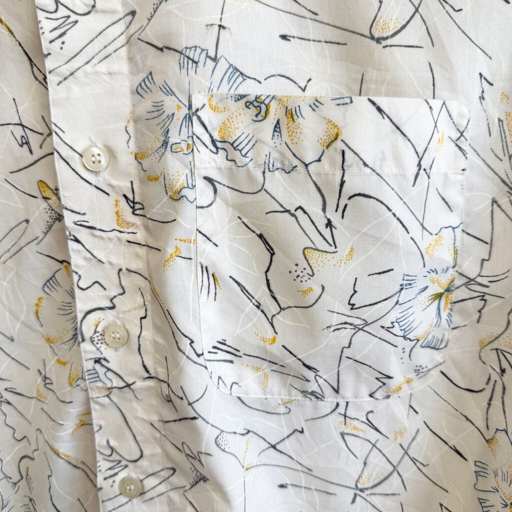 CHERRYWOOD 花柄 アート 総柄 柄シャツ デザインシャツ 長袖シャツ 白×黒×青×黄色 No.G808
