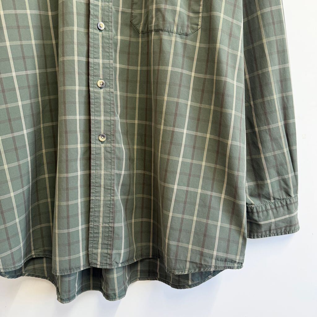 PENDLETON ボタンダウンシャツ コットンシャツ チェック柄 ポケット付き 長袖シャツ カーキ×アイボリー×茶 XLサイズ No.G811
