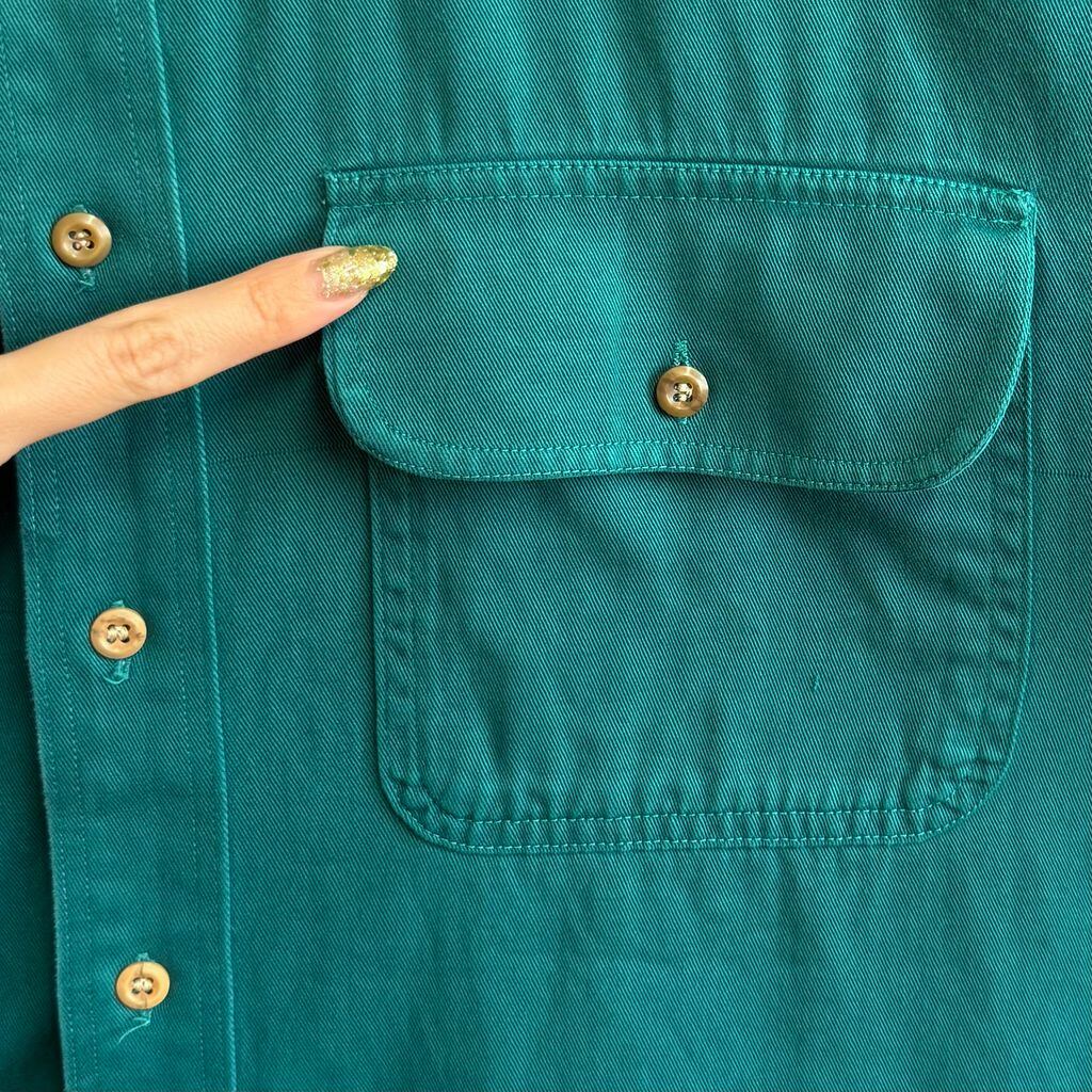 Windridge コットンシャツ 無地 ポケット付き 長袖シャツ エメラルドグリーン Lサイズ No.G814