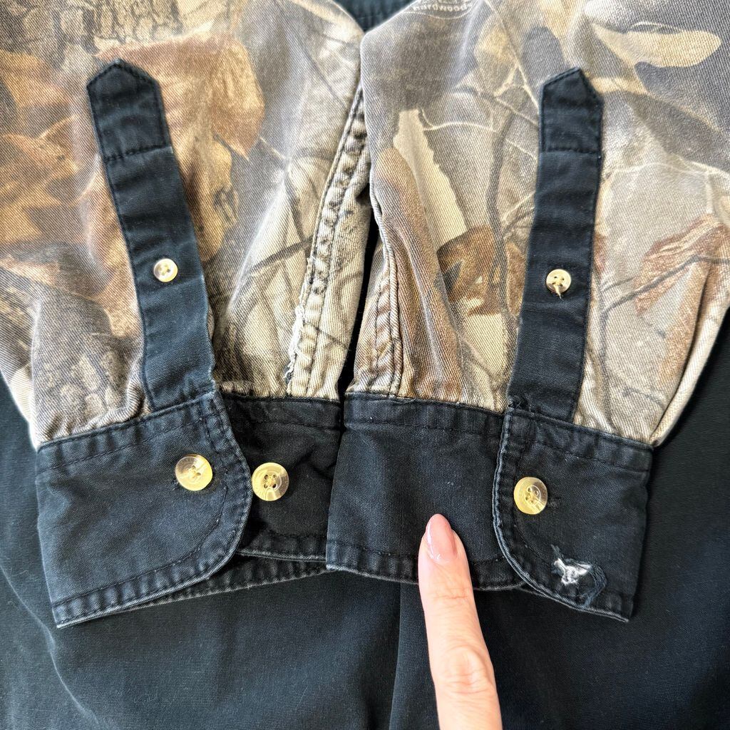 SPORTSMAN'S WAREHOUSE 切り替えデザイン 無地×リアルツリーカモ ボタンダウンシャツ コットンシャツ ポケット付き 長袖シャツ 黒×ベージュ×ブラウン×多色 Lサイズ No.G815