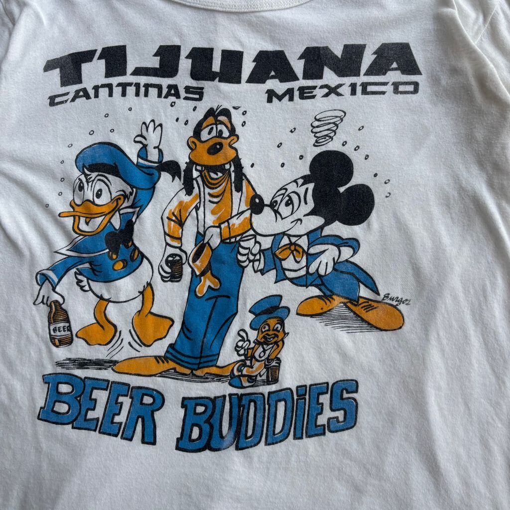 Fajer TIJUANA CANTINAS MEXICO BEER BUDDIES Mickey Mouse プリント Tシャツ44サイズ ホワイト ブート No.K084