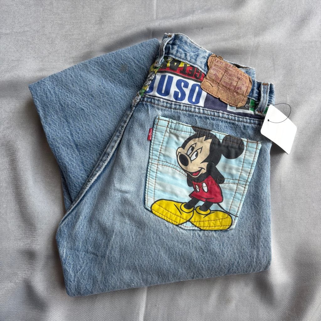 90s LEVI’S リーバイス 501 USA製 カスタム リメイク ミッキー デニムパンツ コットンパンツ 青 W30×L36No.K085