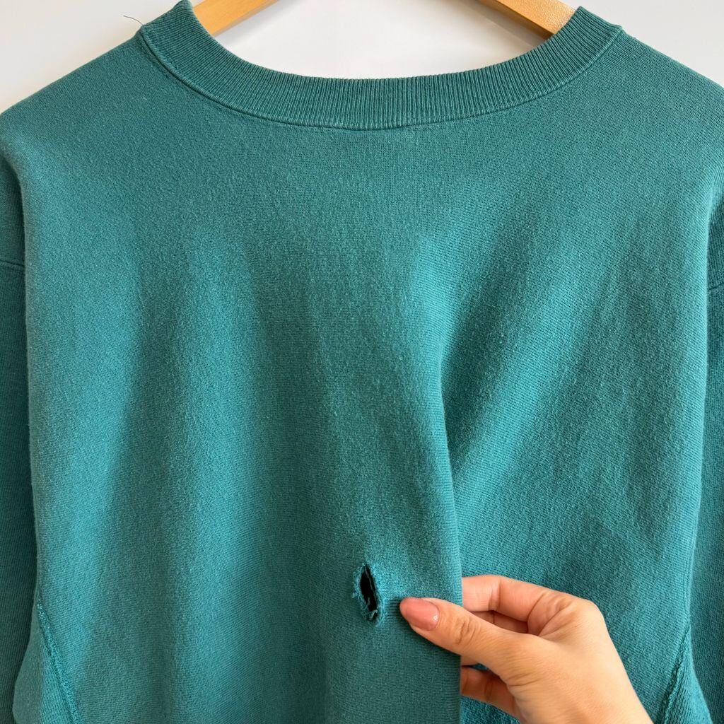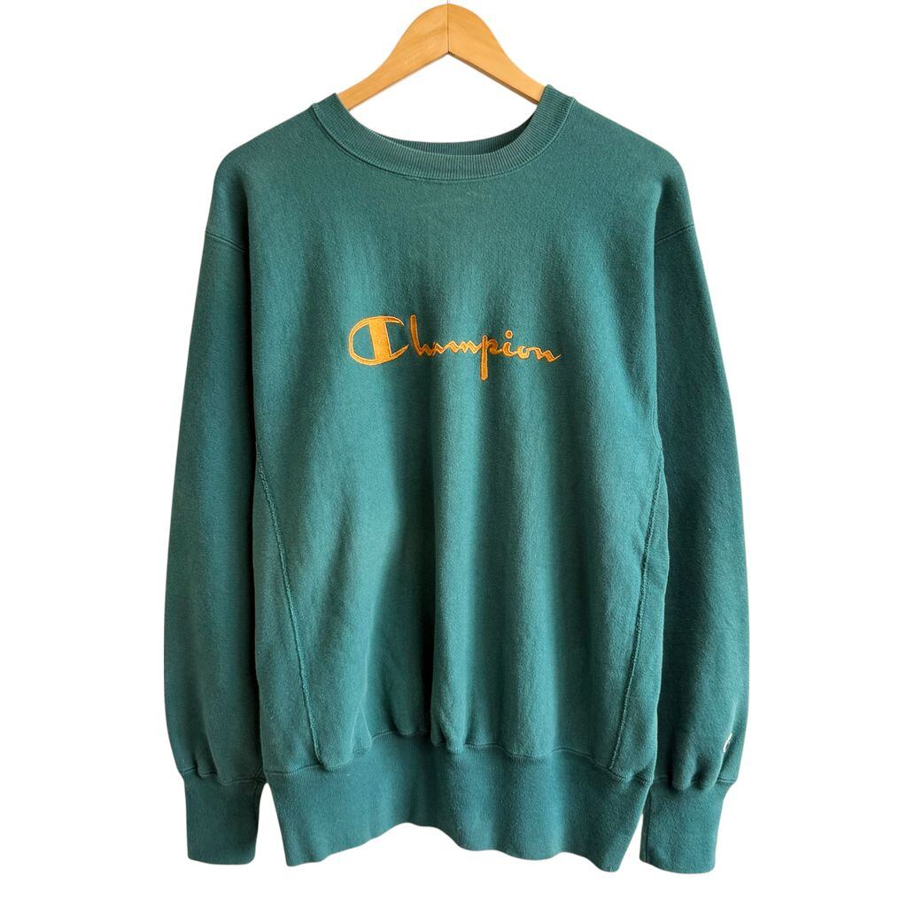 90's USA製 Champion チャンピオン ロゴ刺繍 トレーナー スウェット 裏起毛 エメラルドグリーン Lサイズ No.G840