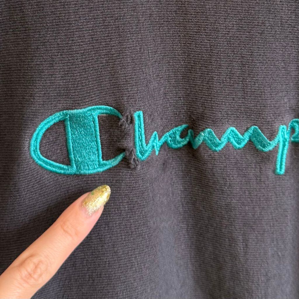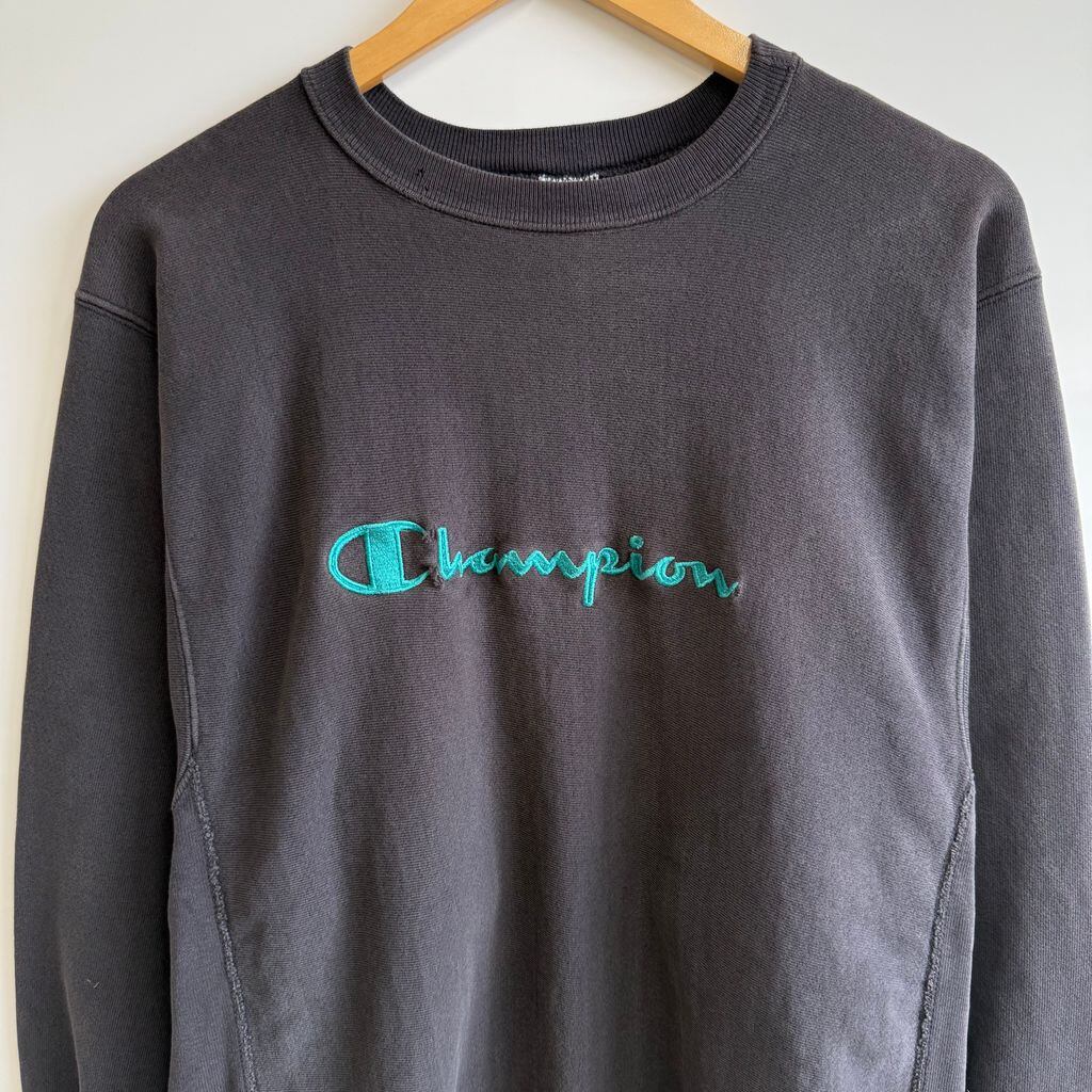 90's USA製 Champion チャンピオン ロゴ刺繍 トレーナー スウェット チャコールグレー XLサイズ No.G841