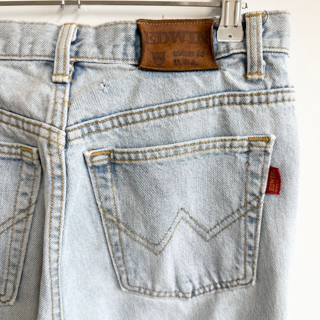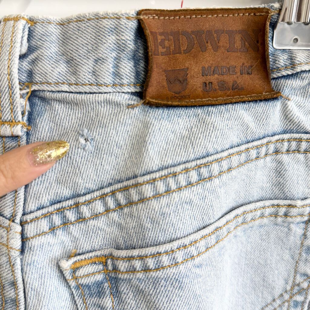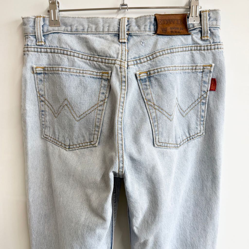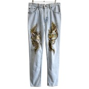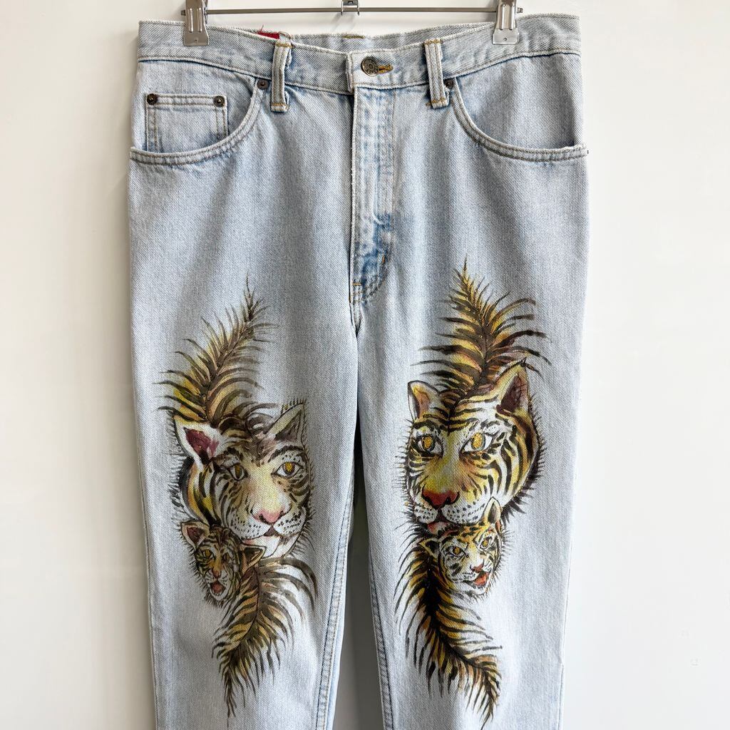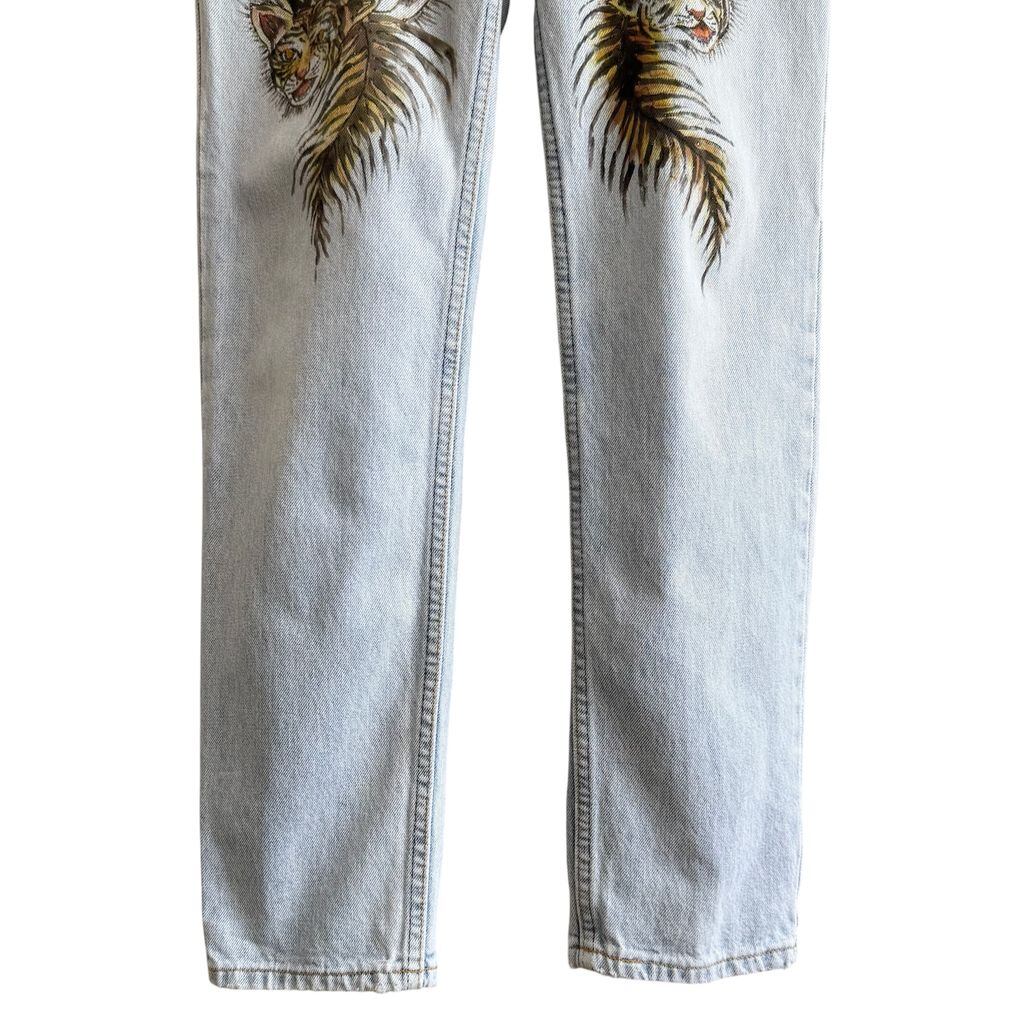 USA製 EDWIN エドウィン ハンドペイント ラメ キラキラ 虎 トラ タイガー デニムパンツ コットンパンツ ライトブルー 青 32×32 No.G852