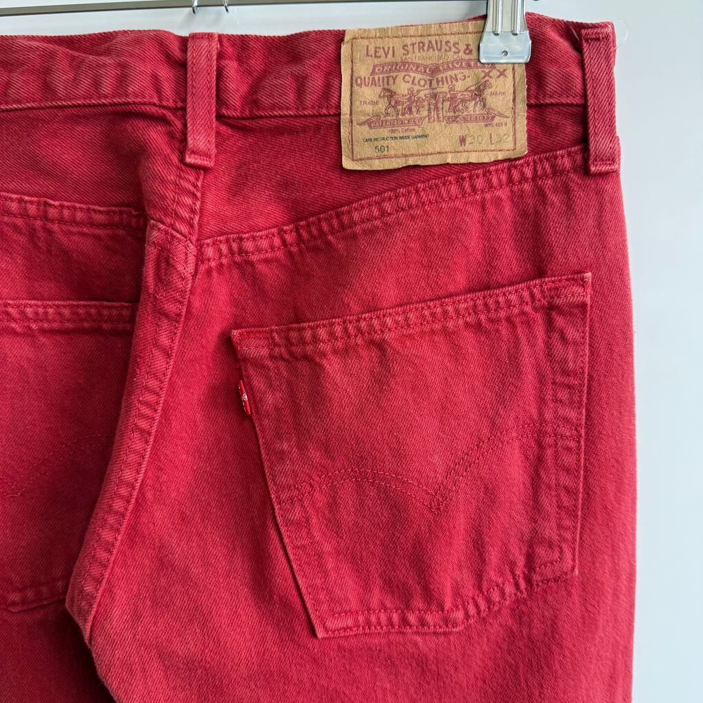 90's イギリス製 vintage ビンテージ LEVI’S リーバイス 501 ボタンフライ デニムパンツ コットンパンツ 赤 レッド W30×32 No.G855