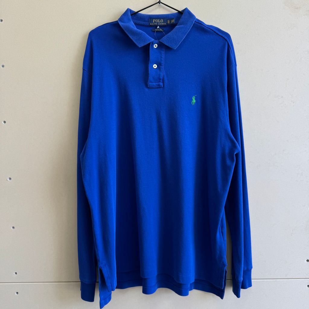 POLO Ralph Lauren ポロ ラルフローレン 無地 ポロシャツ 青 XLサイズ No.E711