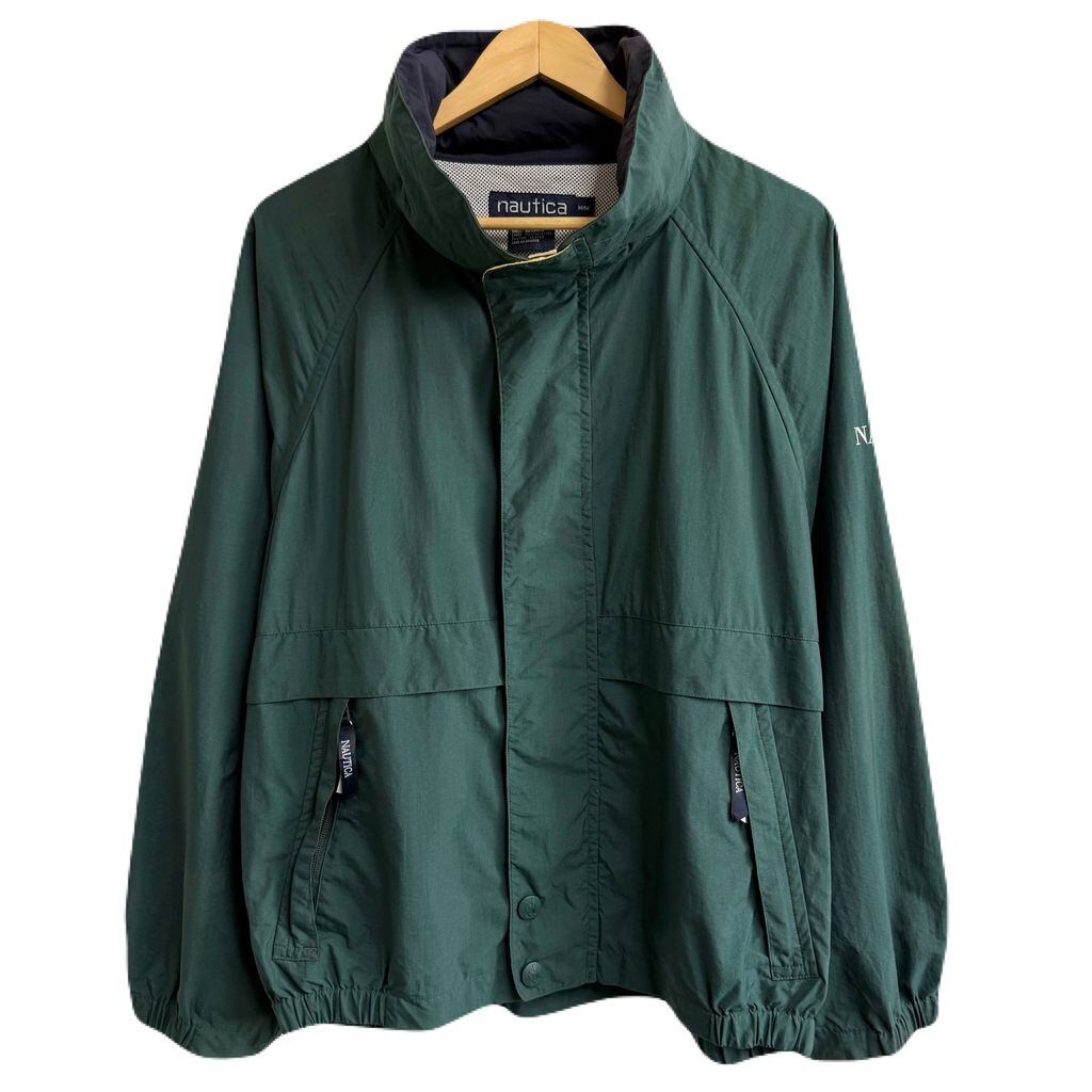 nautica ノーティカ ナイロンジャケット セーリングジャケット フード付き フルジップ ポケット付き ワンポイントロゴ 刺繍 緑 グリーン Mサイズ No.G877