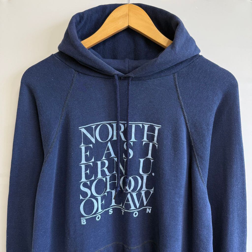 70's〜 USA製 vintage ビンテージ sportswear フーディー パーカー ポケット付き カレッジロゴ 紺 ネイビー XLサイズ No.G885