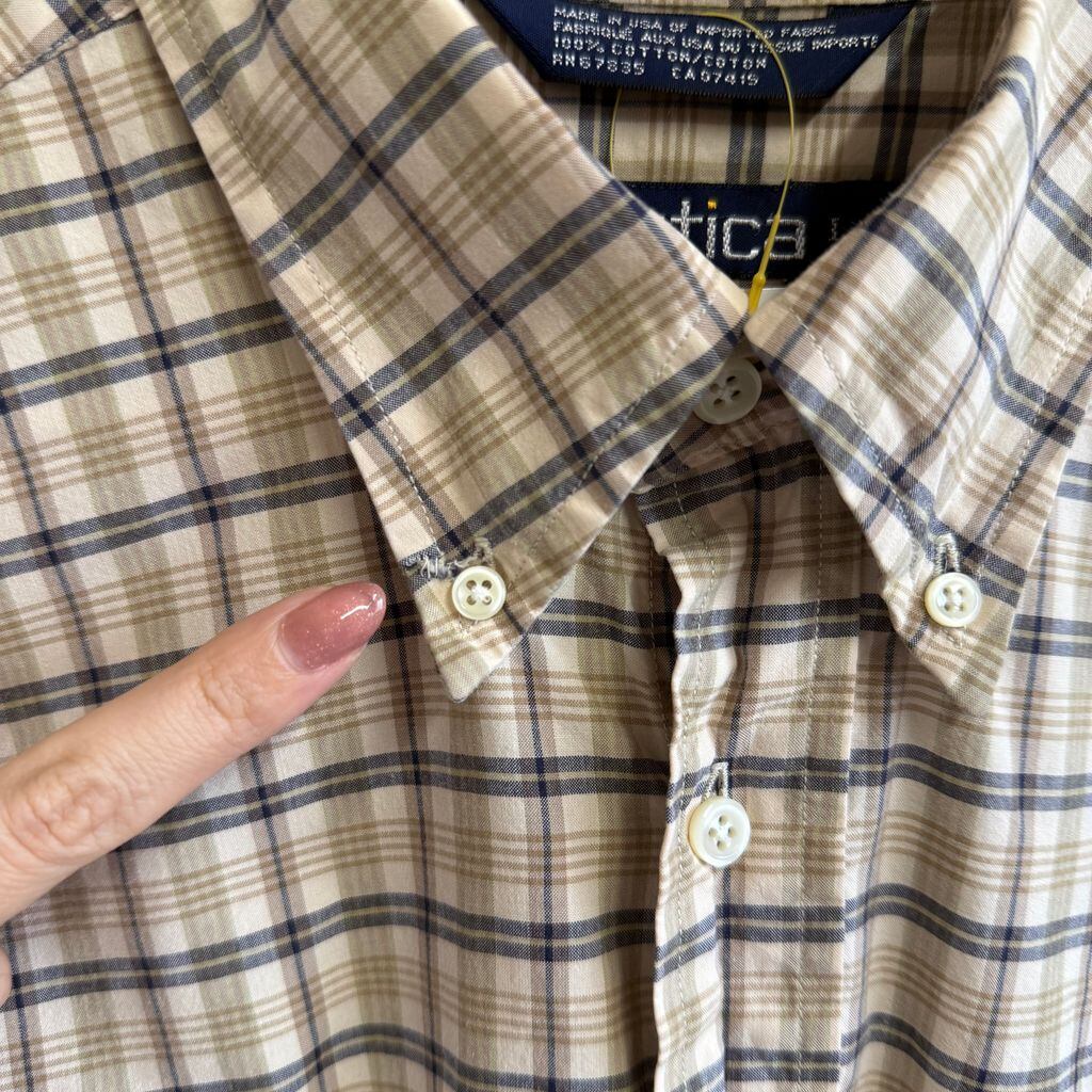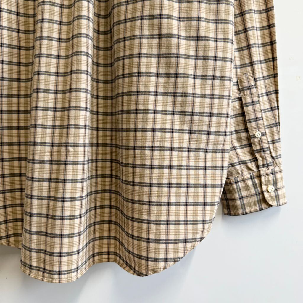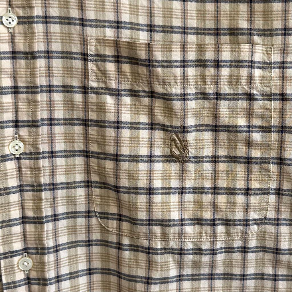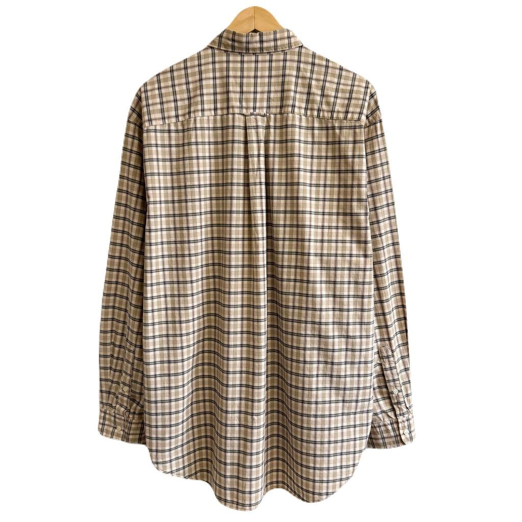 USA製 nautica ノーティカ ボタンダウンシャツ コットンシャツ チェック柄 ポケット付き 長袖シャツ ワンポイントロゴ 刺繍 ベージュ×黒×多色 L/Gサイズ No.G888