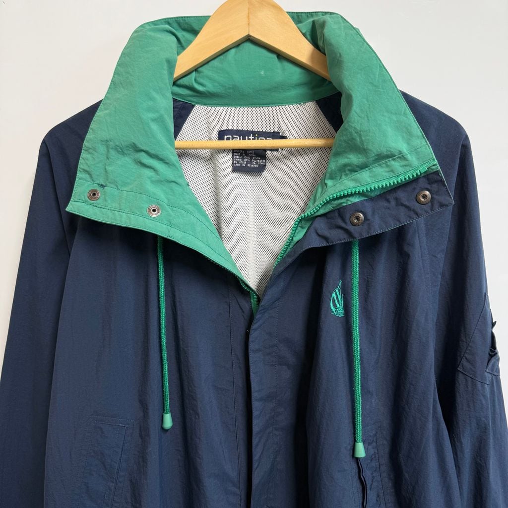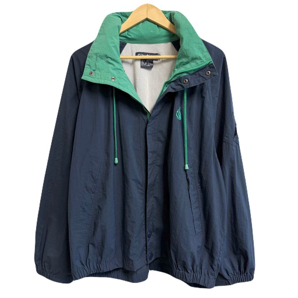 nautica ノーティカ ナイロンジャケット セーリングジャケット 裏地メッシュ フード付き 紺×緑 L/Gサイズ No.G906
