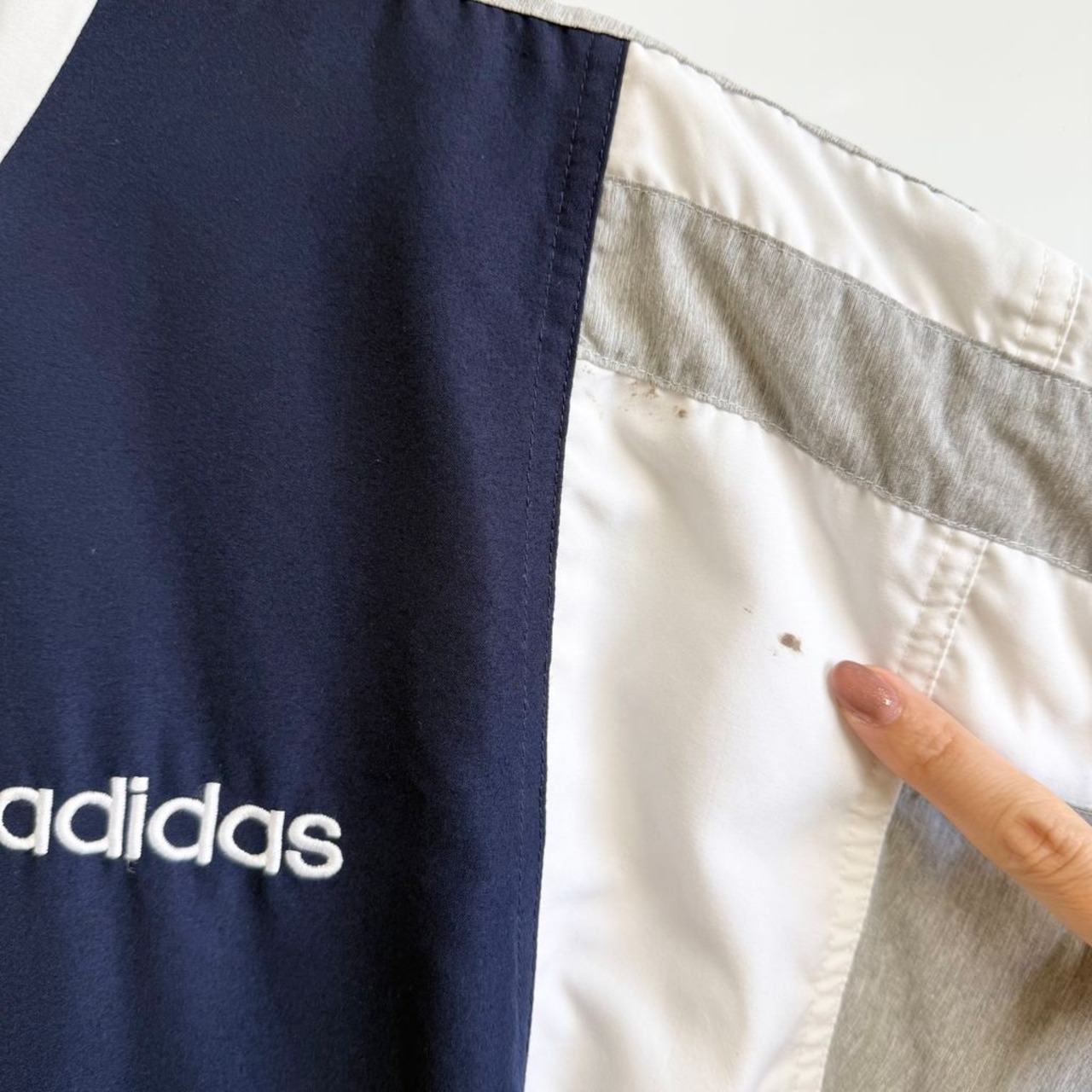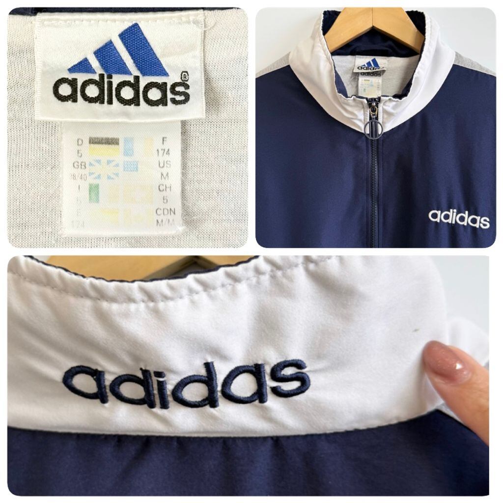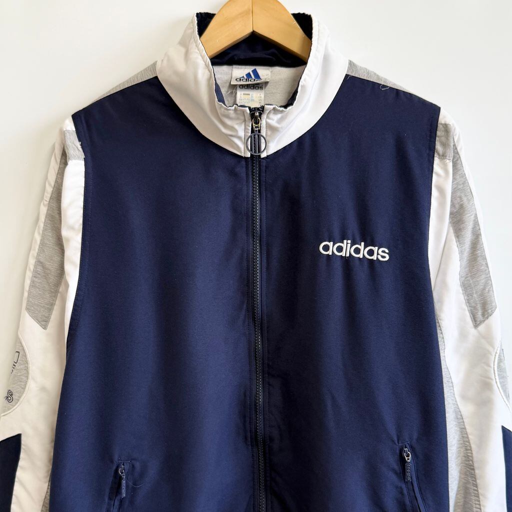 adidas アディダス トラックジャケット ジャージ トレフォイル 紺×白×グレー Mサイズ No.G922