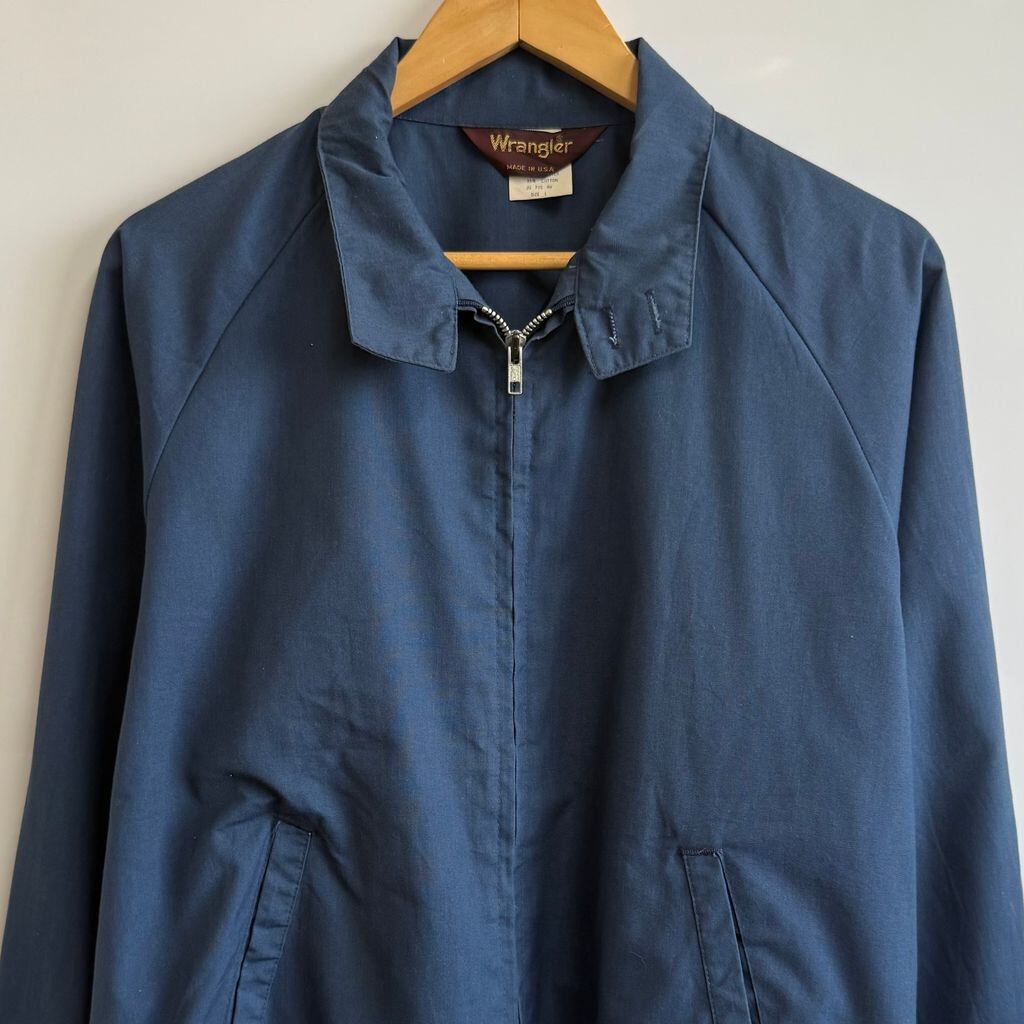 〜80's USA製 Wrangler ラングラー スイングトップ ジャケット ブルゾン フルジップ ポケット付き 無地 紺 ネイビー Lサイズ No.G941