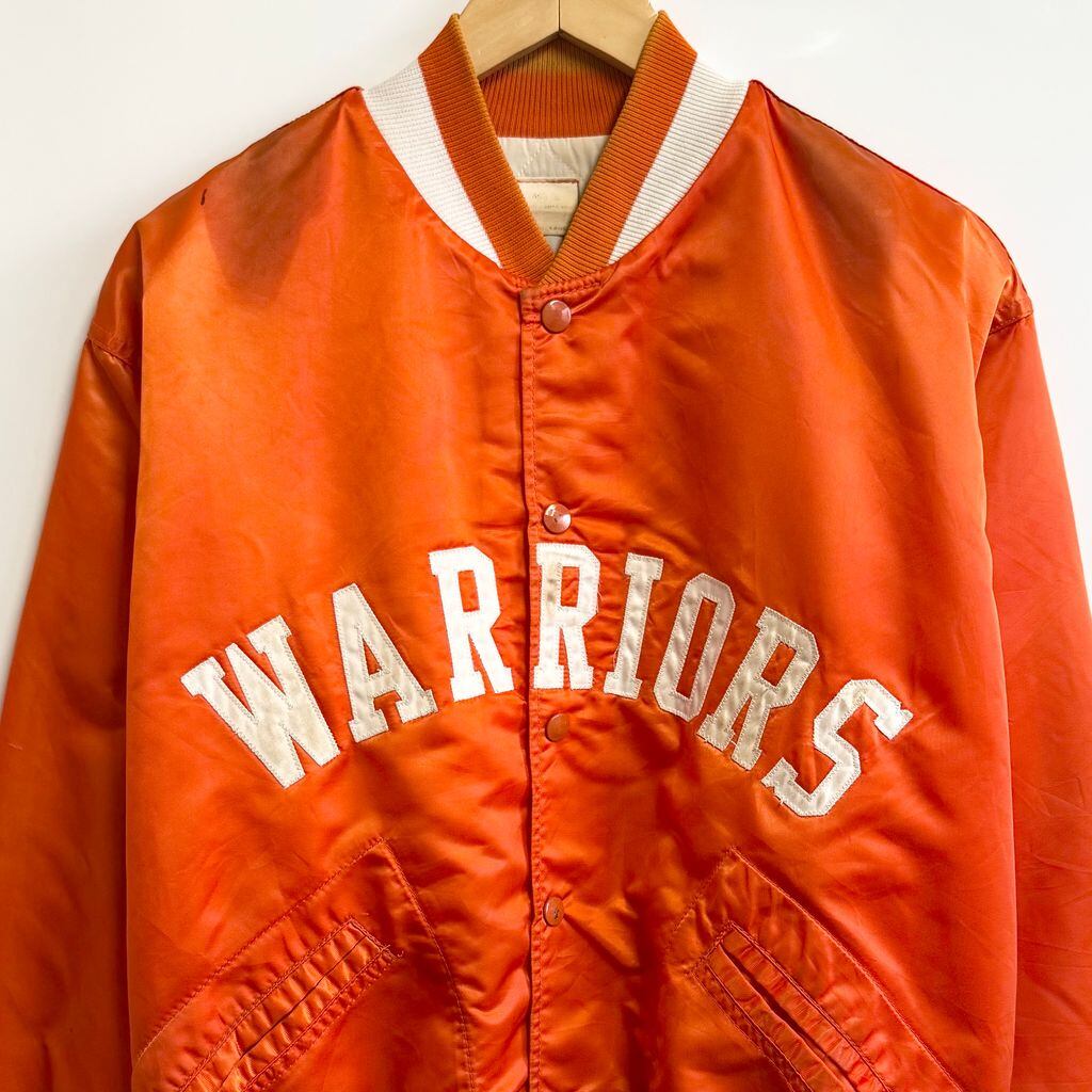 スタジャン WARRIORS ワッペン スナップボタン オレンジ×白 No.G952