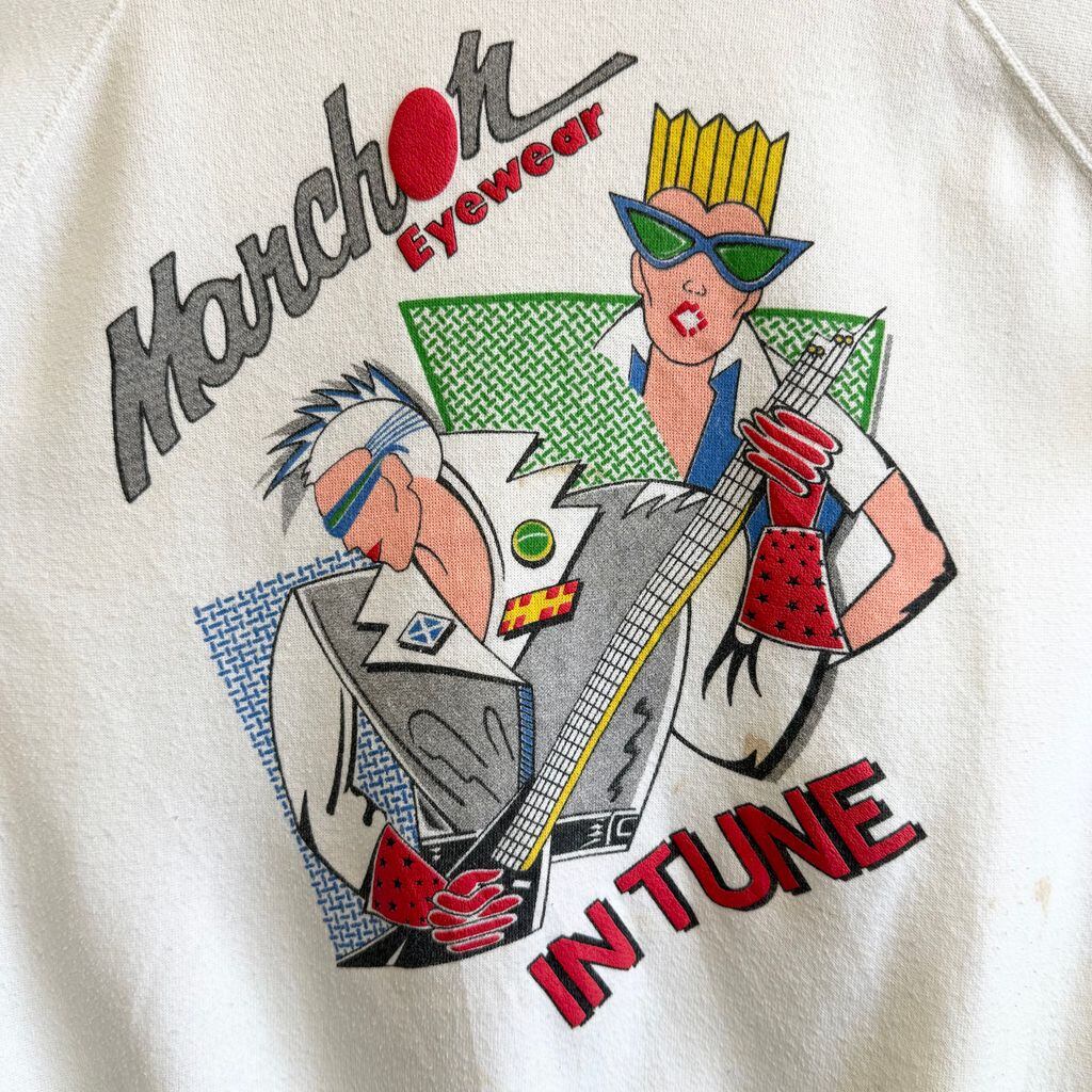 USA製 Hanes ヘインズ ラグランスウェット トレーナー 裏起毛 Marchor Eyewear 昭和 レトロ POP ポップ サングラス 白 Lサイズ No.G981