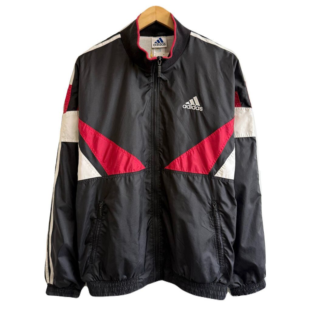 adidas アディダス トラックジャケット ジャージ フルジップ ポケット付き 黒×白×赤 Mサイズ No.G995