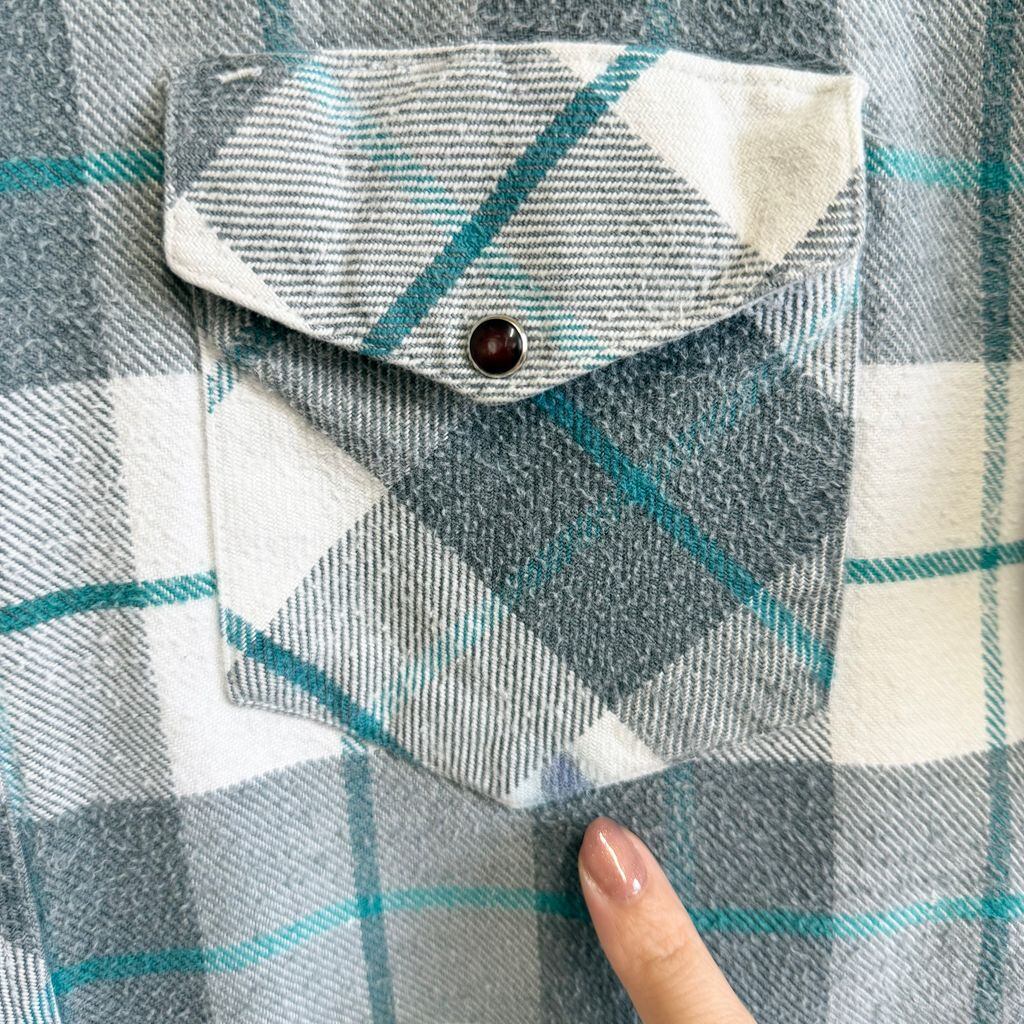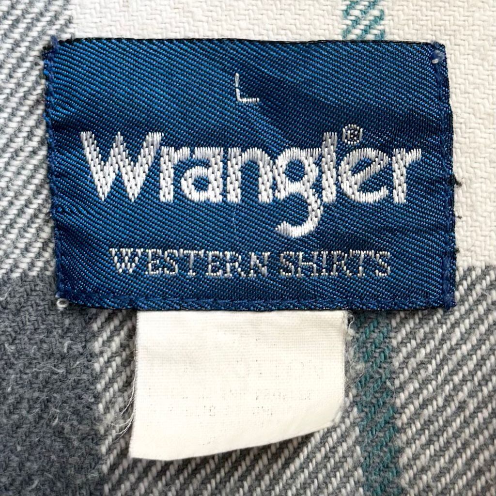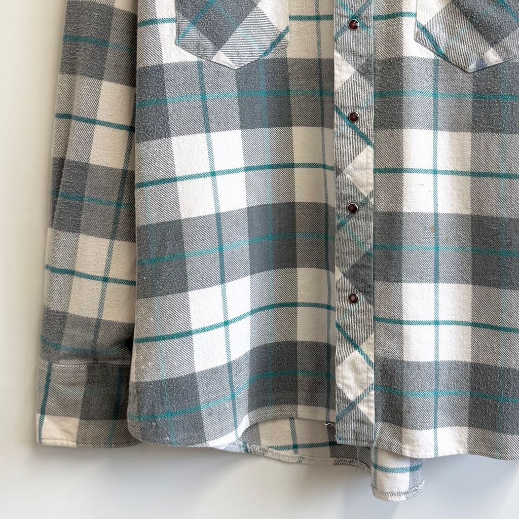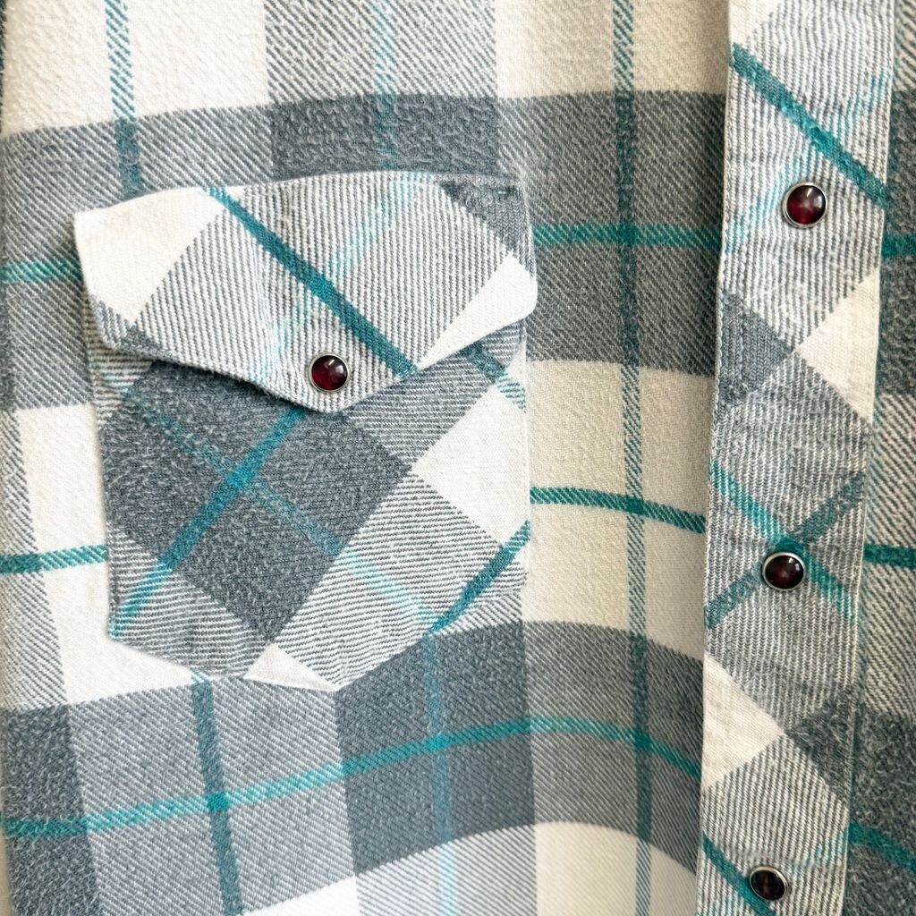 Wrangler ラングラー ウエスタンシャツ スナップボタン チェック柄 ポケット付き 厚手長袖シャツ 白×グレー×ターコイズブルー Lサイズ No.H030