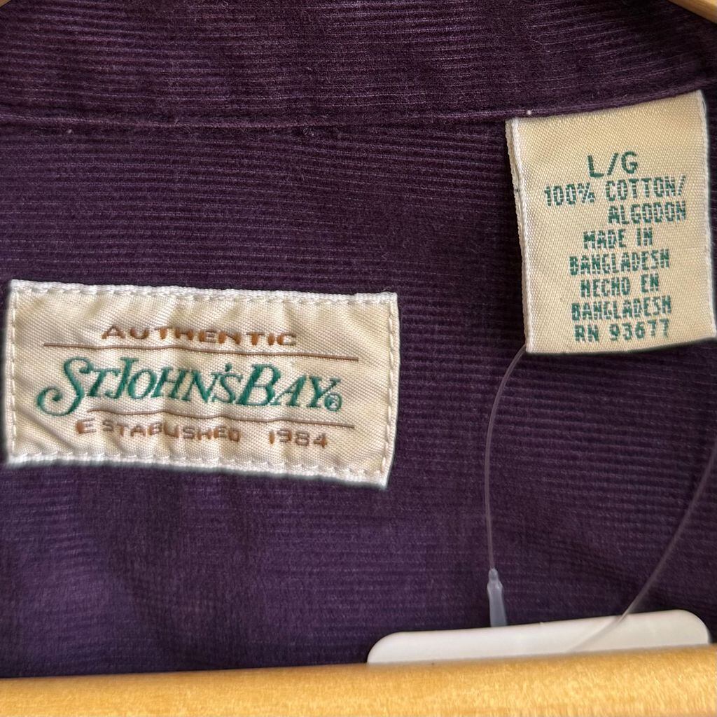 ST JOHN'S BAY コーデュロイ ボタンダウンシャツ コットンシャツ 無地 ポケット付き 長袖シャツ 紫 パープル L/Gサイズ No.H032