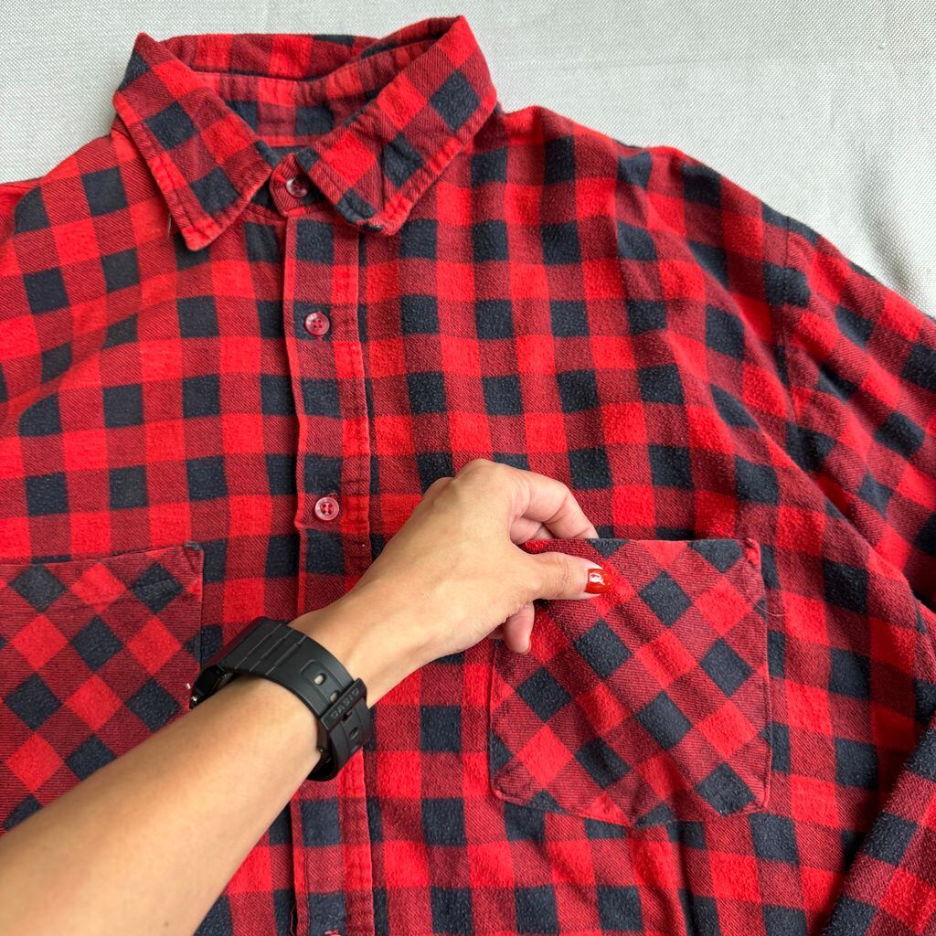 Dickies ディッキーズ チェック柄 ポケット付き ネルシャツ 長袖シャツ 赤×紺 Lサイズ No.E740